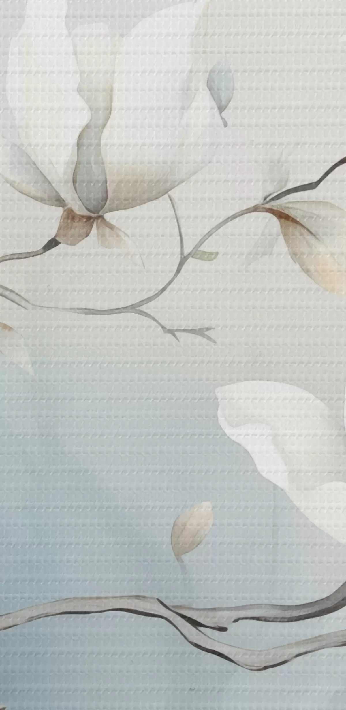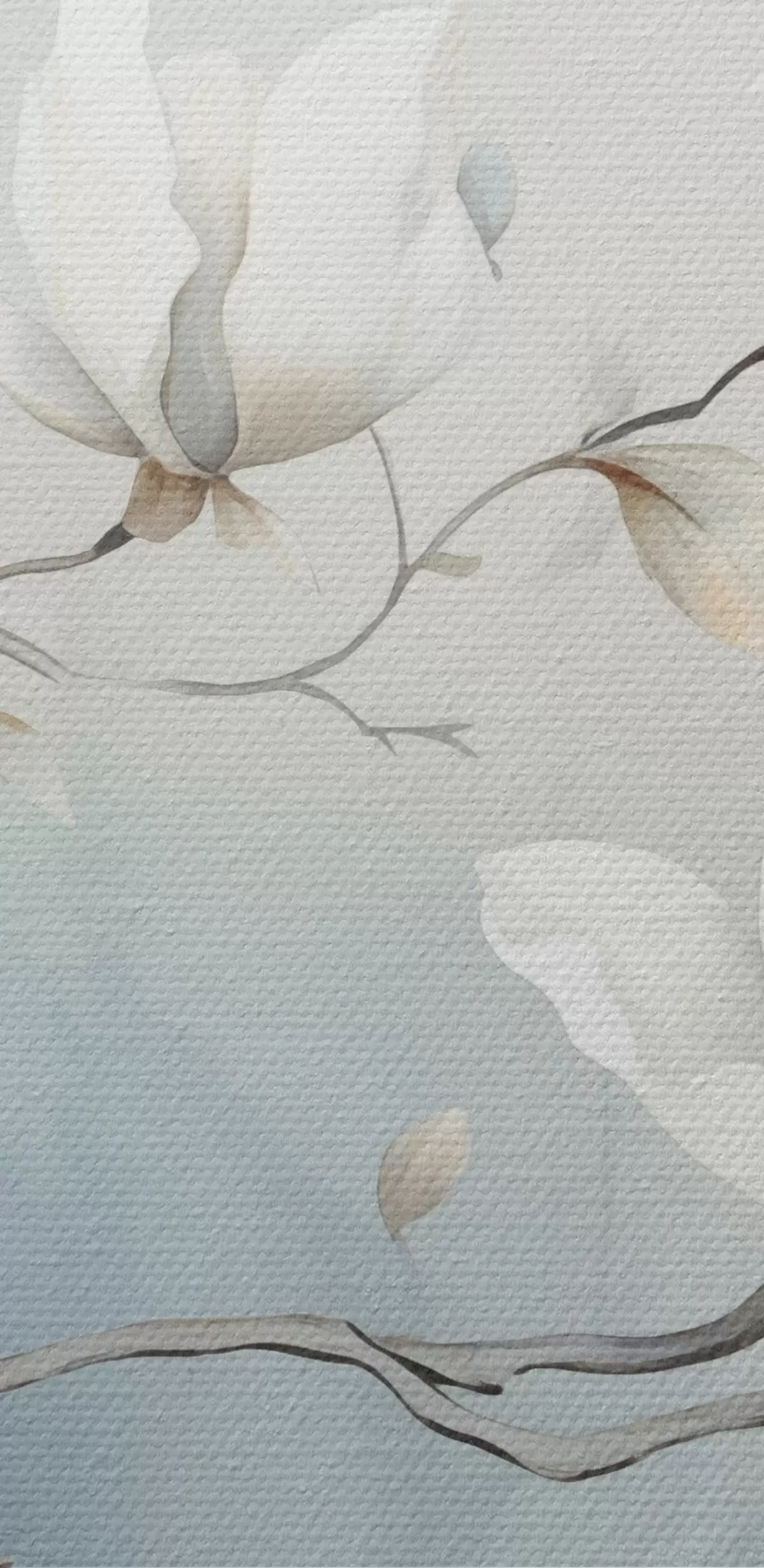 Okrągły obraz Gałęzie magnolii z białymi kwiatami na delikatnym tle Nr r45806