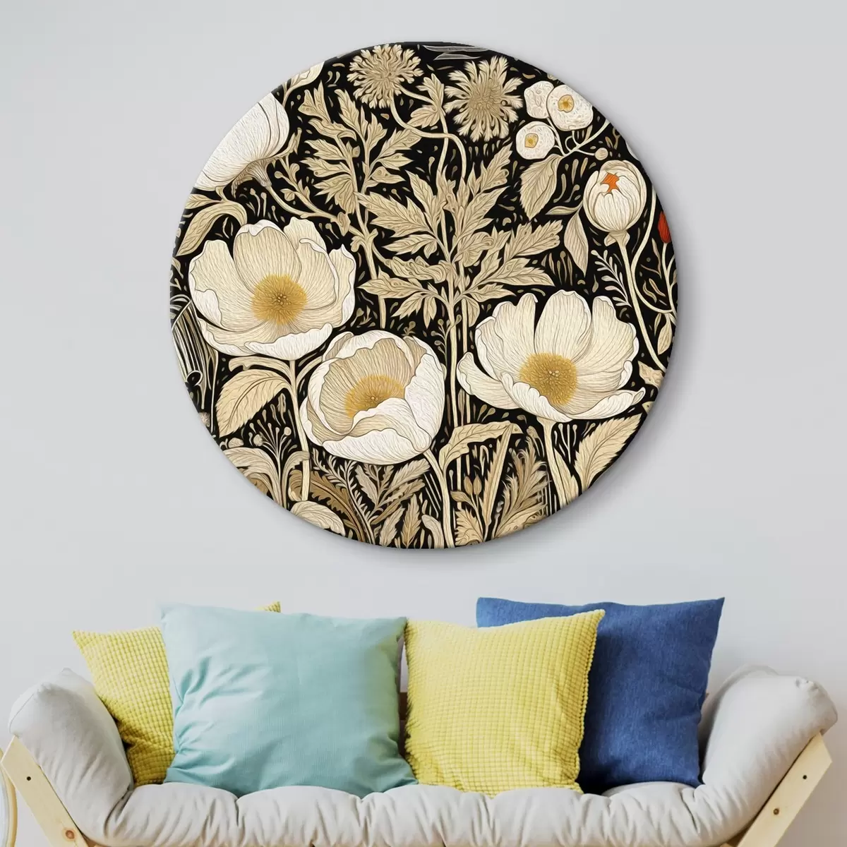 Okrągłe obrazy Kremowe kwiaty i trawy na czarnym tle r45816
