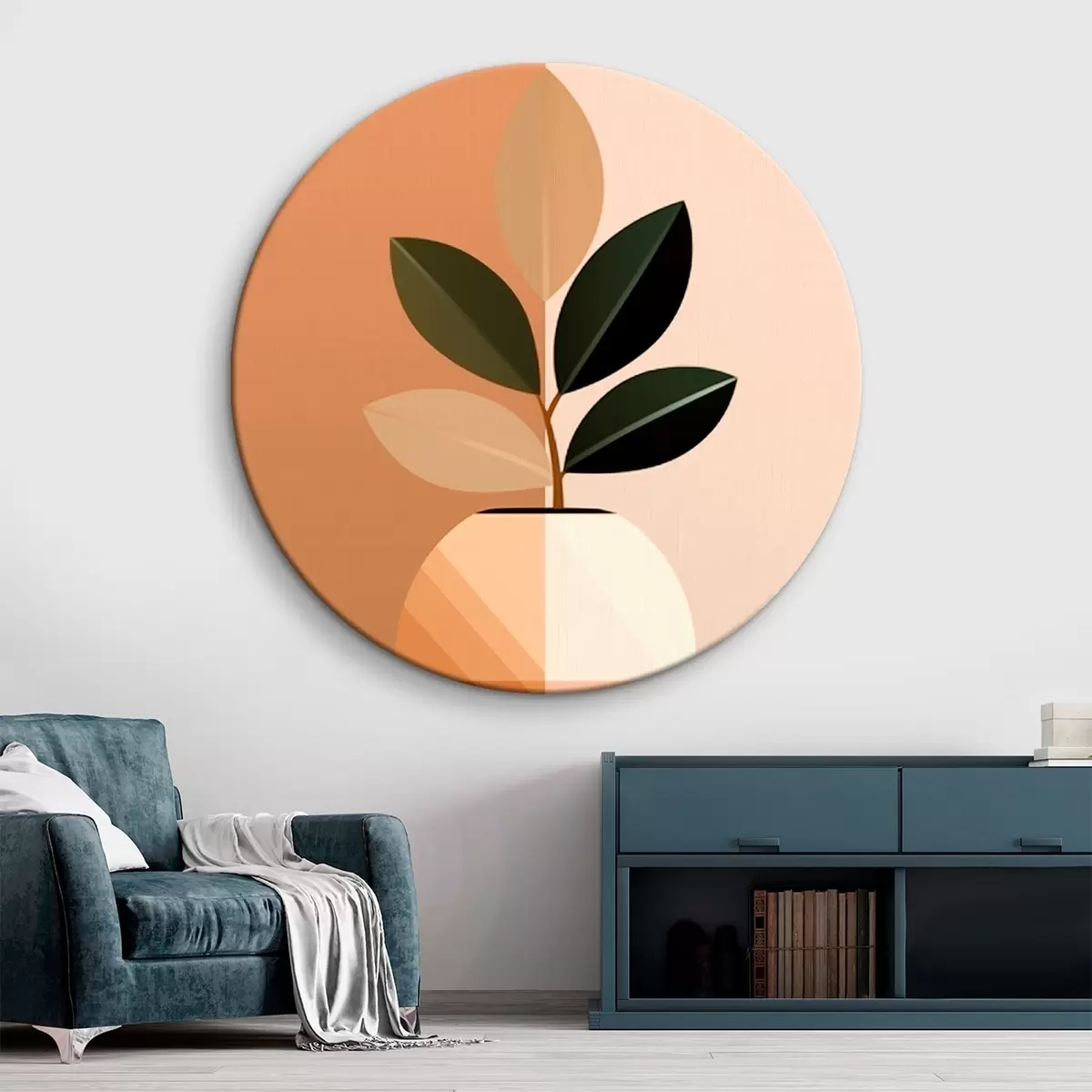 Okrągły obraz Geometryczny wazon z liśćmi Nr r45833
