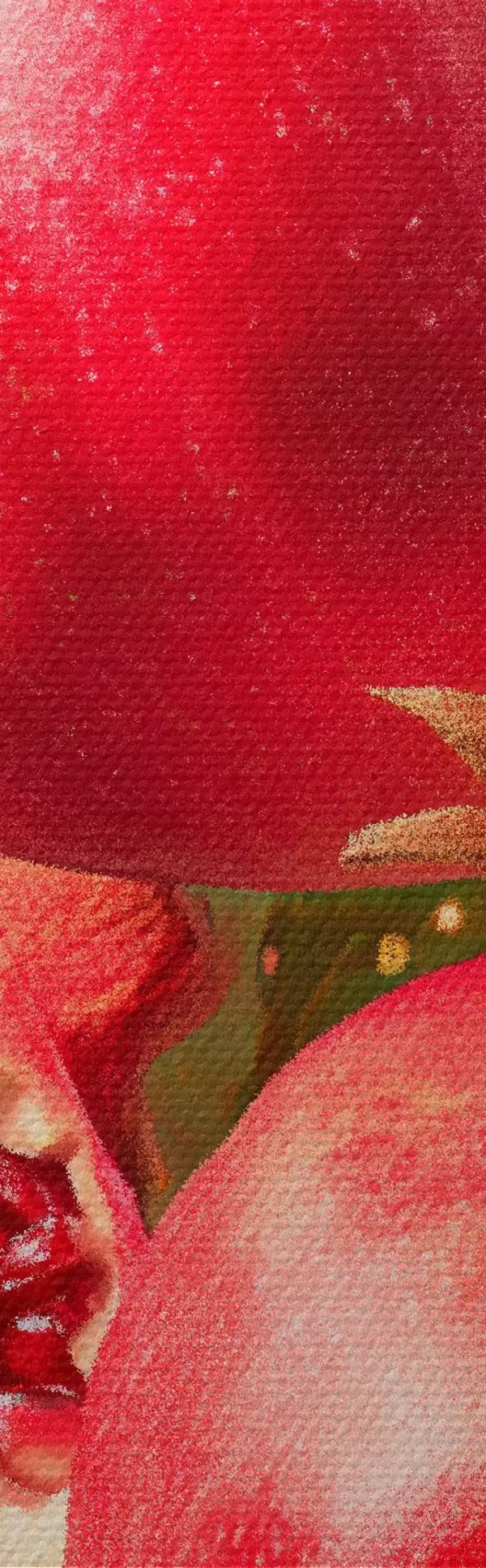 Okrągły obraz Dojrzałe granaty на różowym tle z liśćми і plamkami Nr r45868