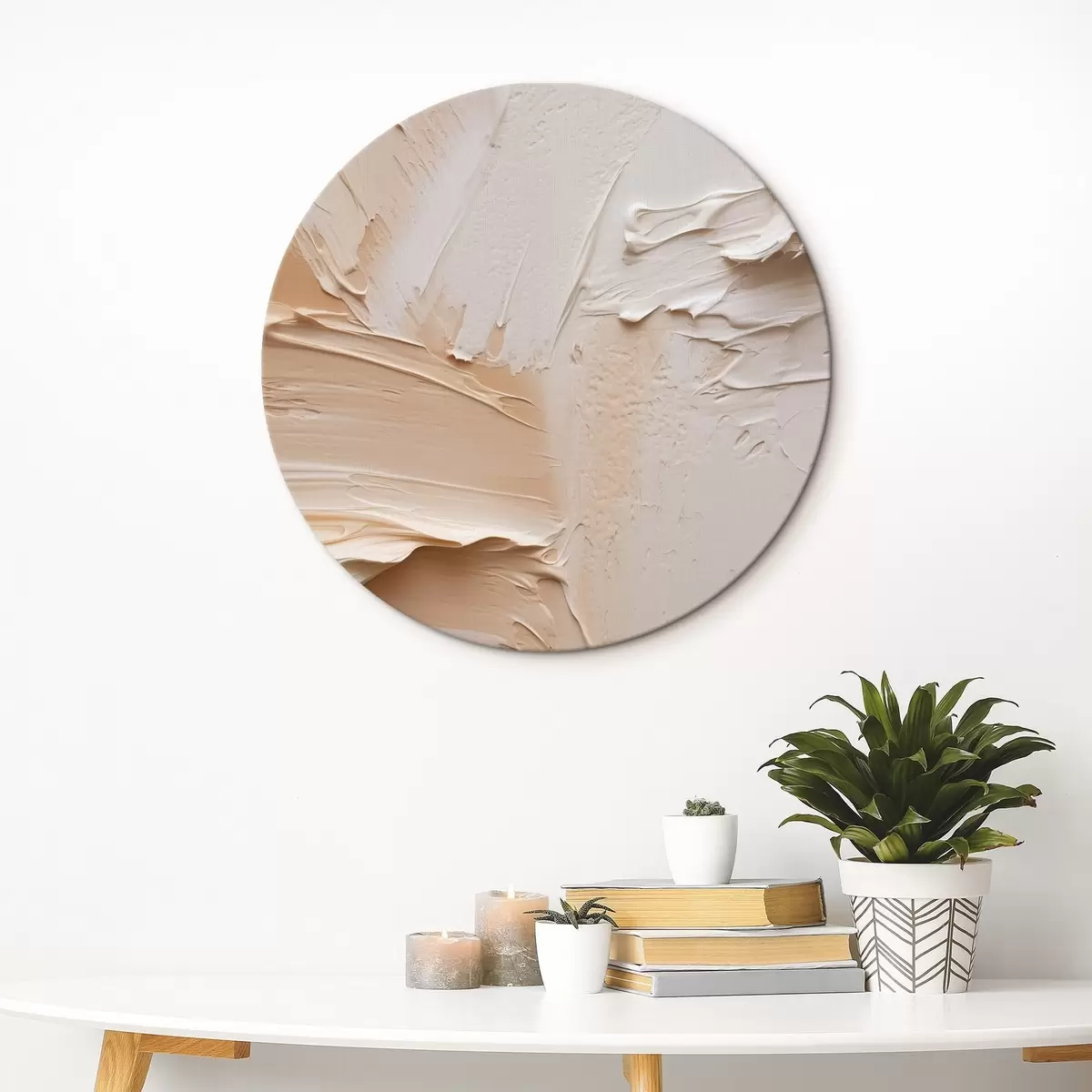 Okrągły obraz Lekkie pociągnięcia impasto, kremowa, piaskowa faktura Nr r45872