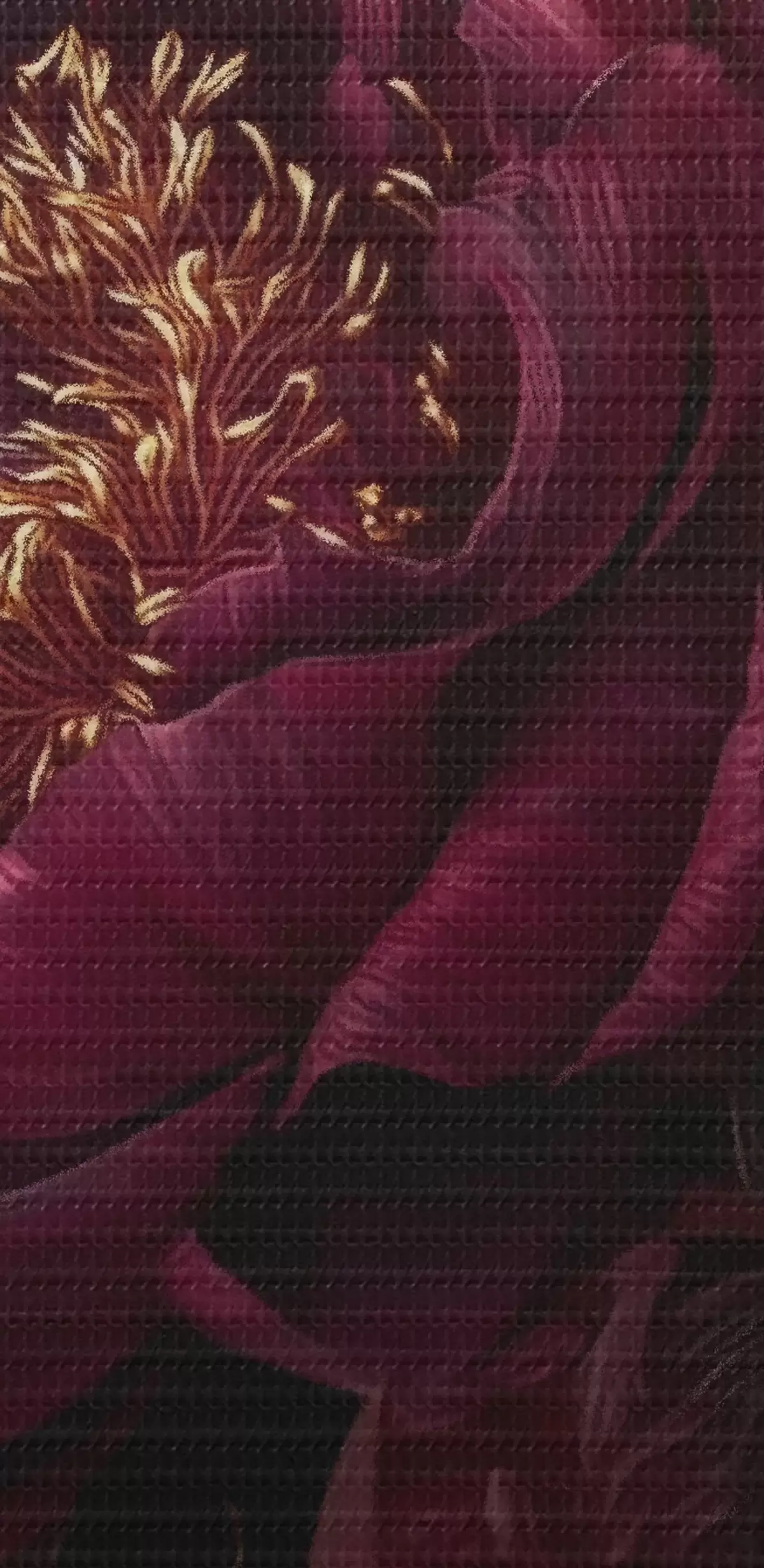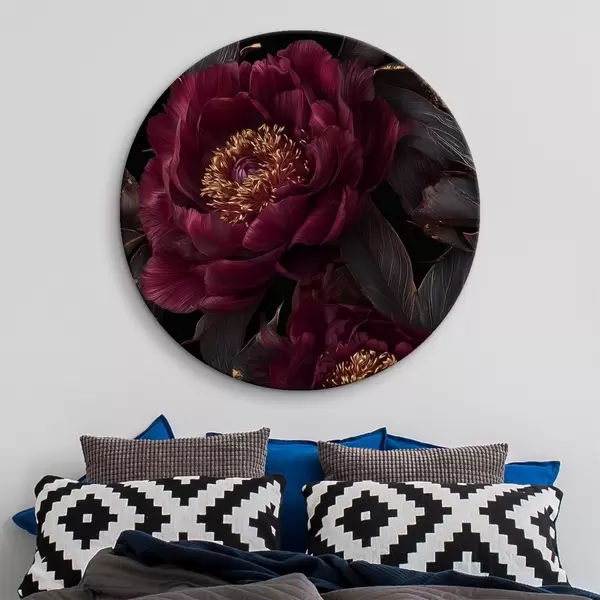Okrągły obraz Burgundowe piwonie na czarnym tle z żółtymi akcentami Nr r45877