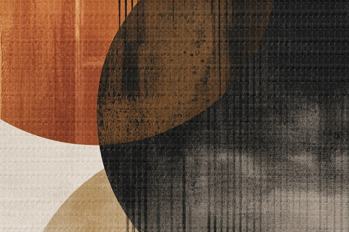Okrągły obraz Trzy teksturowane koła z liniami w palecie kolorów terakota-czerń Nr r45885
