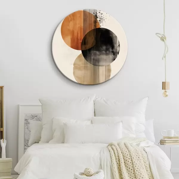 Okrągły obraz Trzy teksturowane koła z liniami w palecie kolorów terakota-czerń Nr r45885