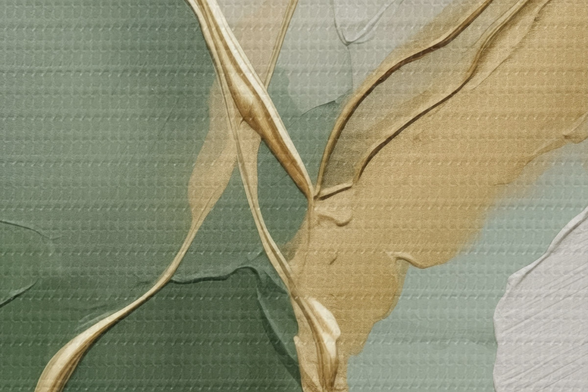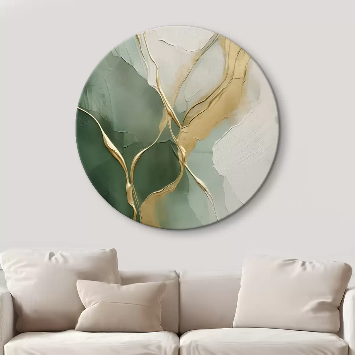 Okrągłe obrazy Szmaragdowo-kremowa abstrakcja z żółtymi strumieniami r45887