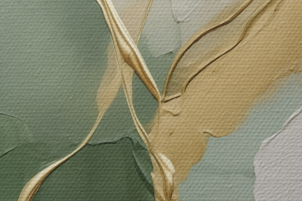 Okrągły obraz Szmaragdowo-kremowa abstrakcja z żółtymi strumieniami Nr r45887