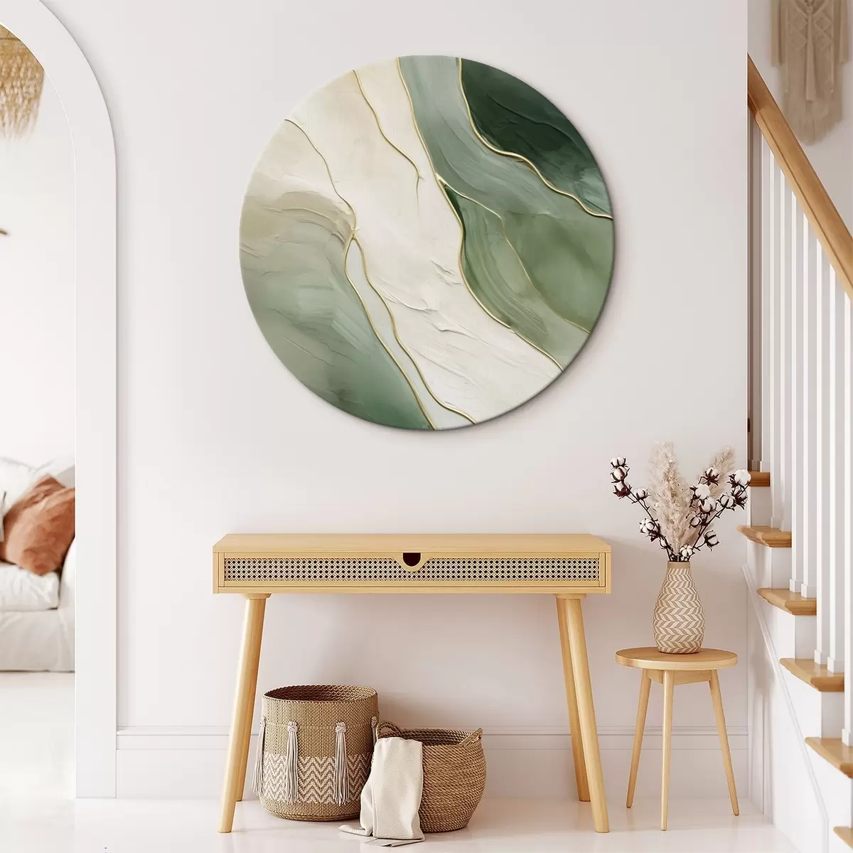 Okrągłe obrazy Szmaragdowa abstrakcja z delikatnymi żółtymi liniami r45888