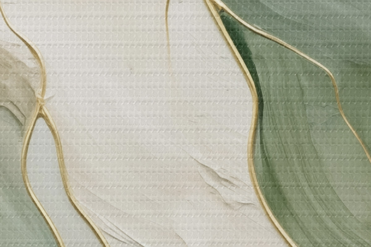 Okrągły obraz Szmaragdowa abstrakcja z delikatnymi żółtymi liniami Nr r45888