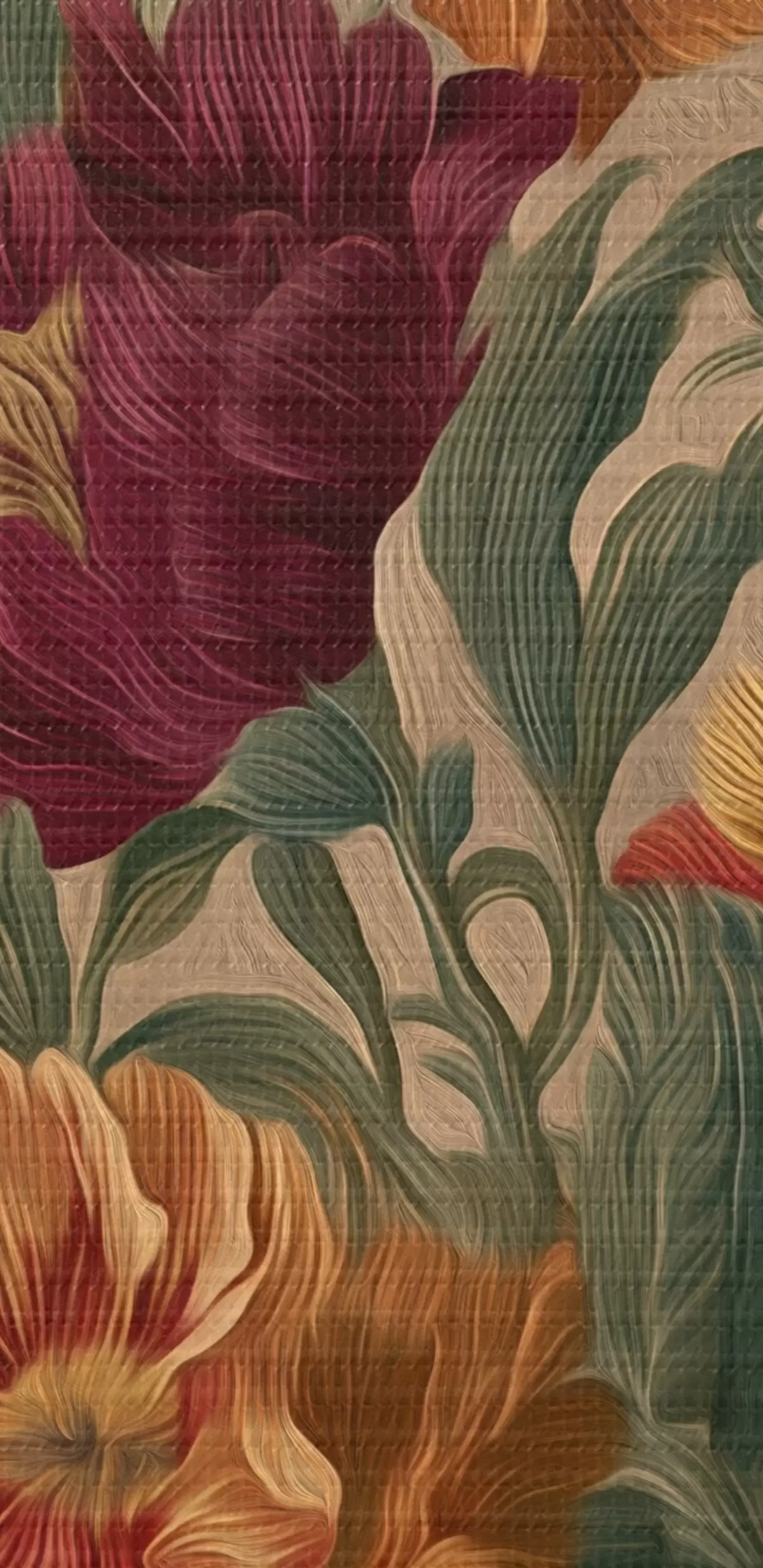 Okrągły obraz Vintage kwiatowy wzór w ciepłej palecie barw Nr r45896