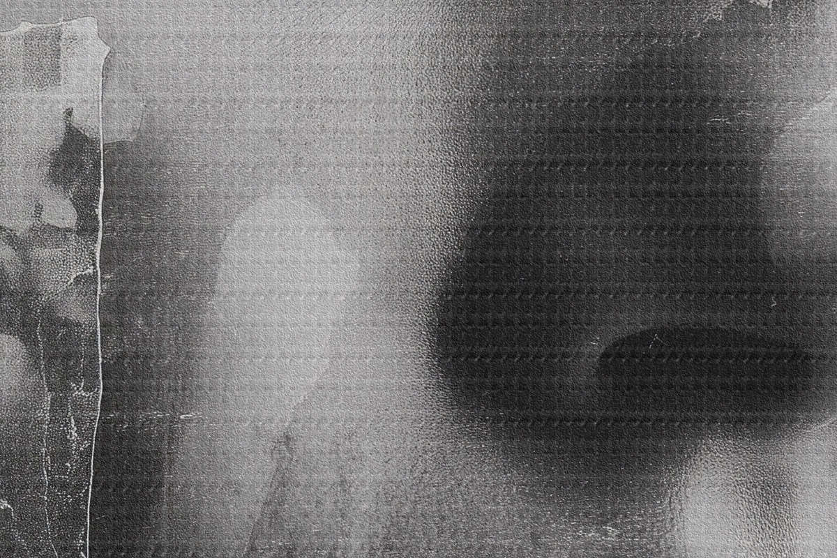 Okrągły obraz Czarno-biały kolażowy portret z podartymi warstwami tekstury Nr r45898