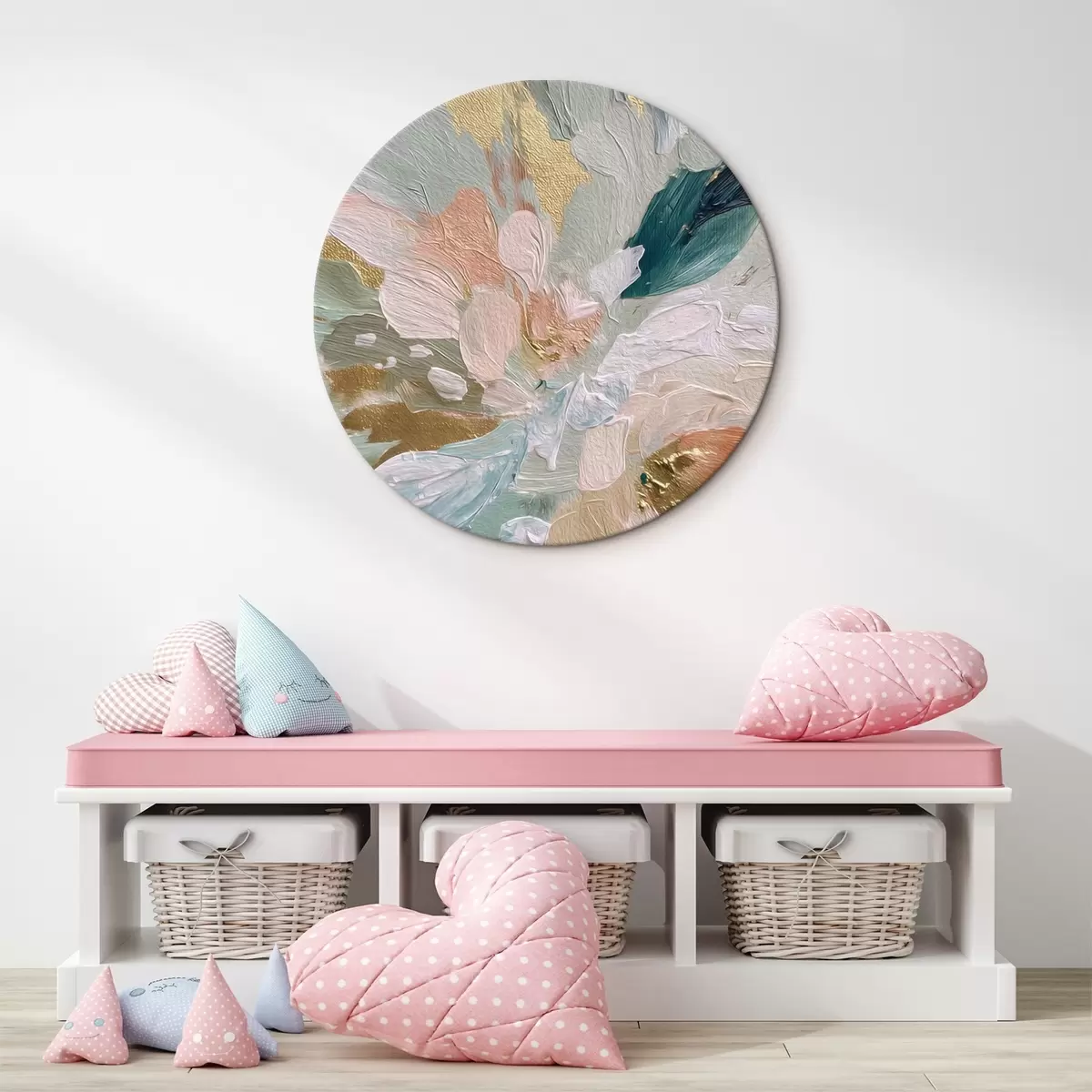 Okrągły obraz Pastelowe kwiatowe pociągnięcia pędzlem z żółtymi plamkami Nr r45899