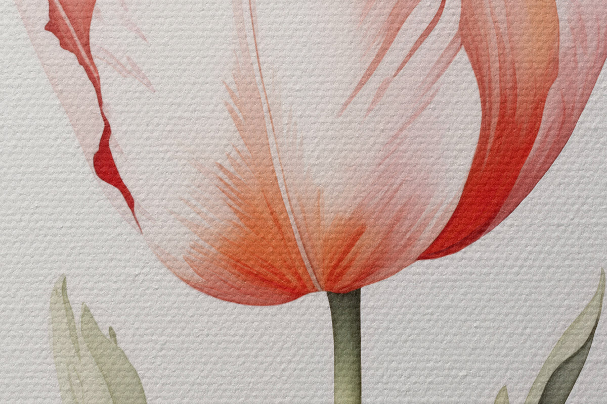 Drobny splot nici na tym płótnie przypomina powierzchnię profesjonalnych płócien artystycznych.