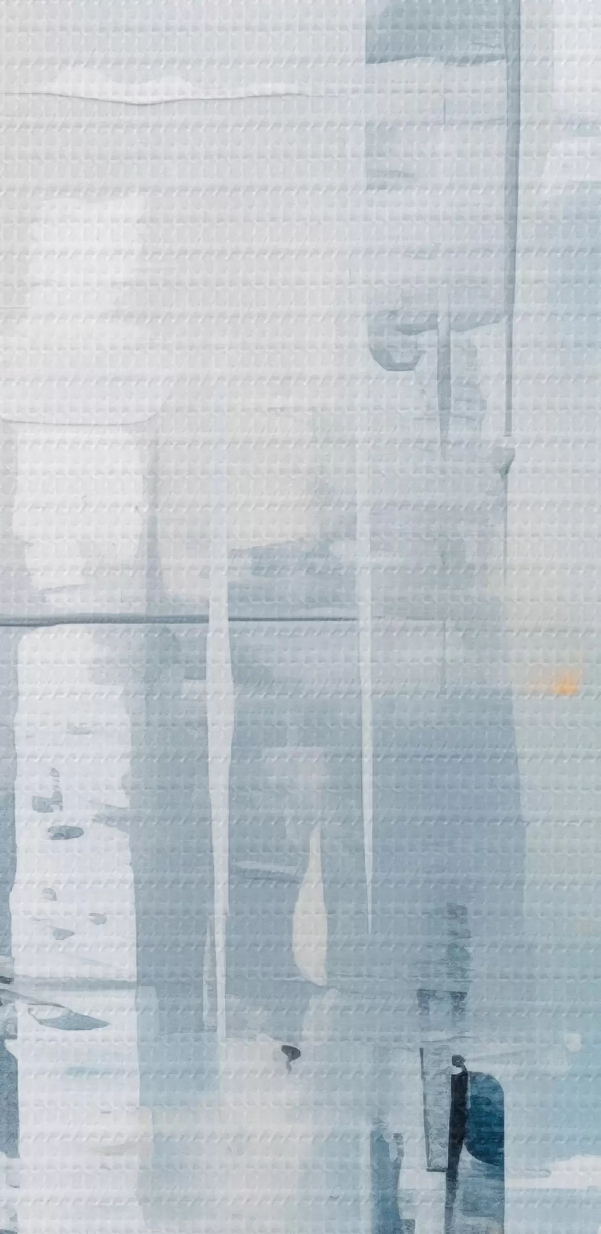Okrągły obraz Imitacja malarstwa abstrakcyjnego w kolorach niebieskim, szarym i białym, z pionowymi liniami i geometrycznymi kształtami Nr r45927