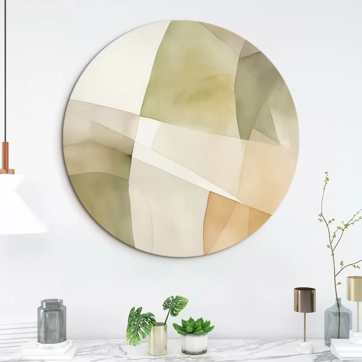 Okrągłe obrazy Abstrakcyjne geometryczne kształty o fakturze akwareli w odcieniach zieleni, brązu i beżu r45928