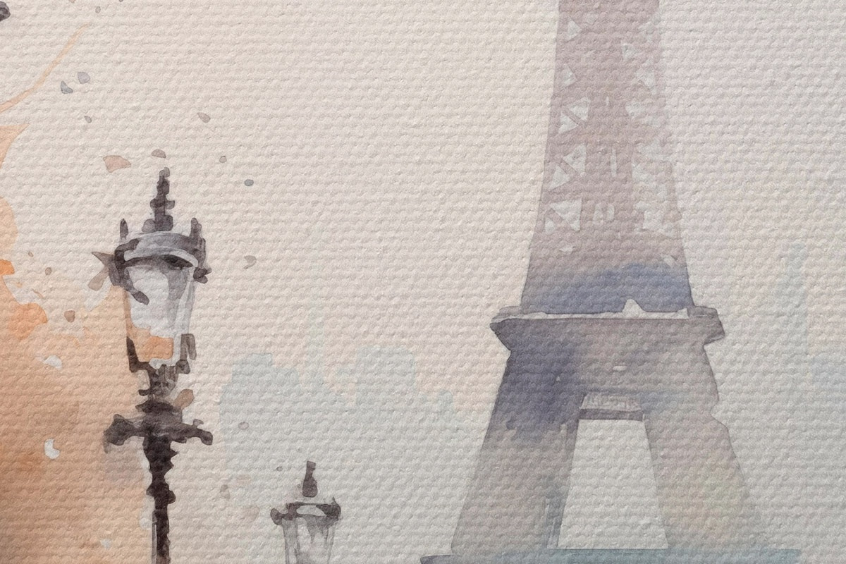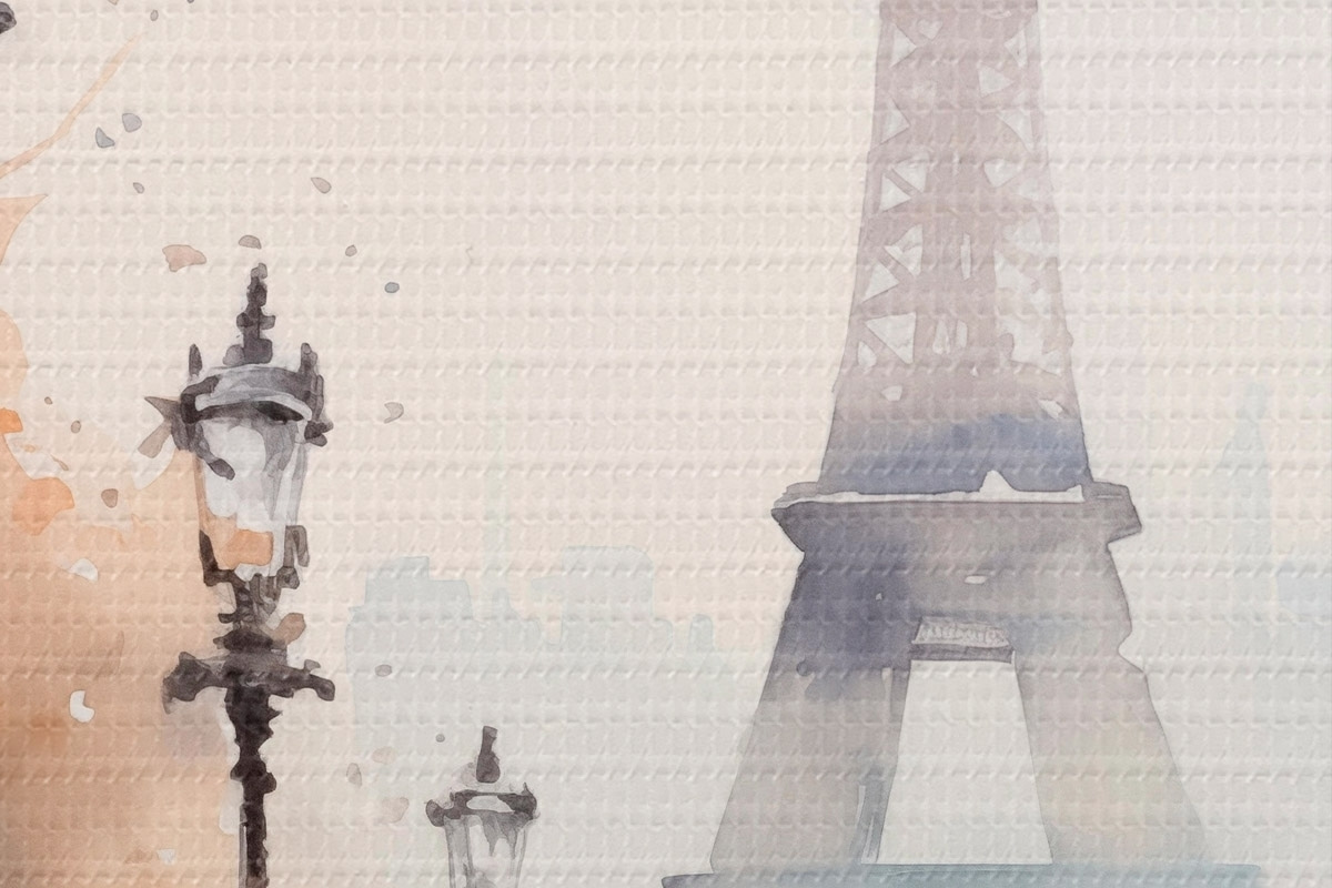 Okrągły obraz Deszczowy dzień w Paryżu z Wieżą Eiffla w tle i zabytkowymi latarniami ulicznymi Nr r45930