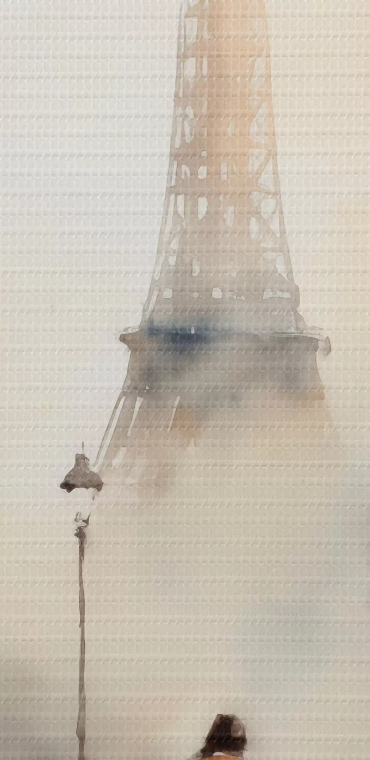 Okrągłe obrazy Deszczowy jesienny dzień w Paryżu z Wieżą Eiffla w tle i zabytkowymi latarniami ulicznymi r45931