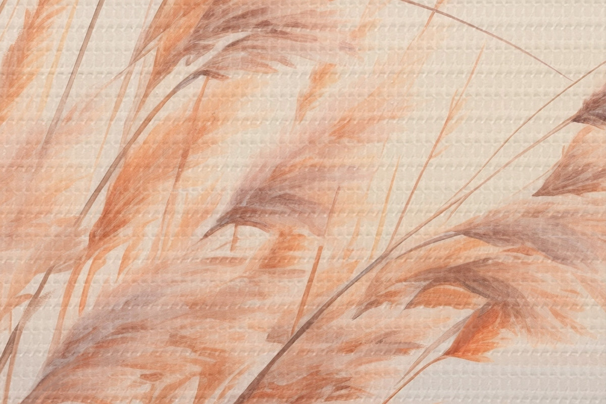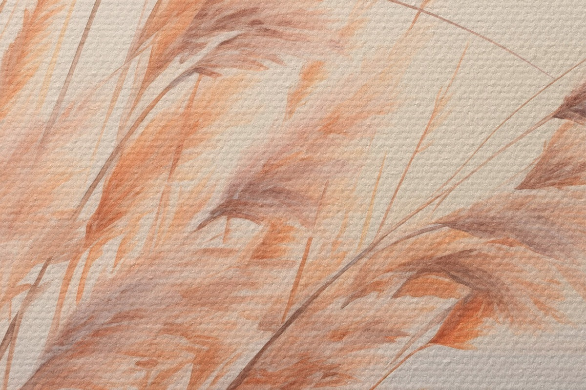 Okrągłe obrazy Trawa pampasowa w pastelowej pomarańczowej kolorystyce, jasnoróżowe niebo, spokojny krajobraz r45934
