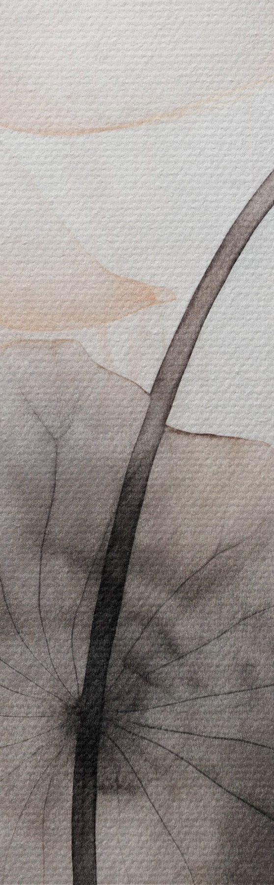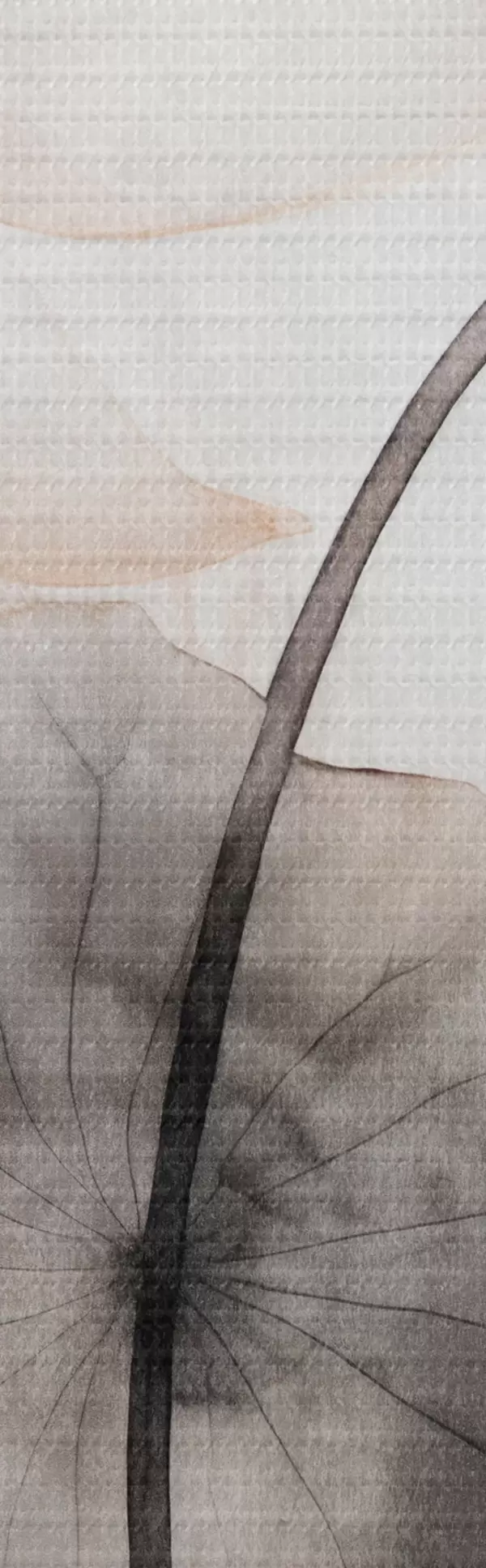 Okrągły obraz Białe teksturowane kwiaty lotosu z ciemnymi liśćmi, jasnym tłem i minimalistycznym wzorem Nr r45937