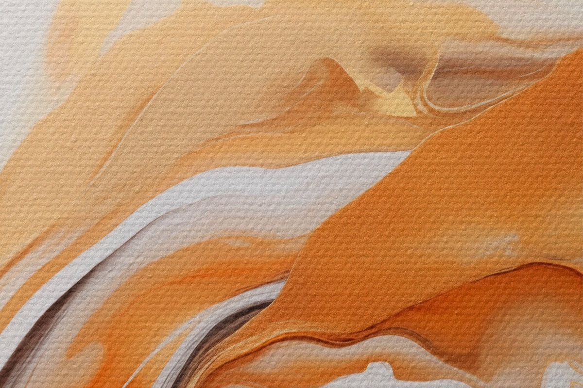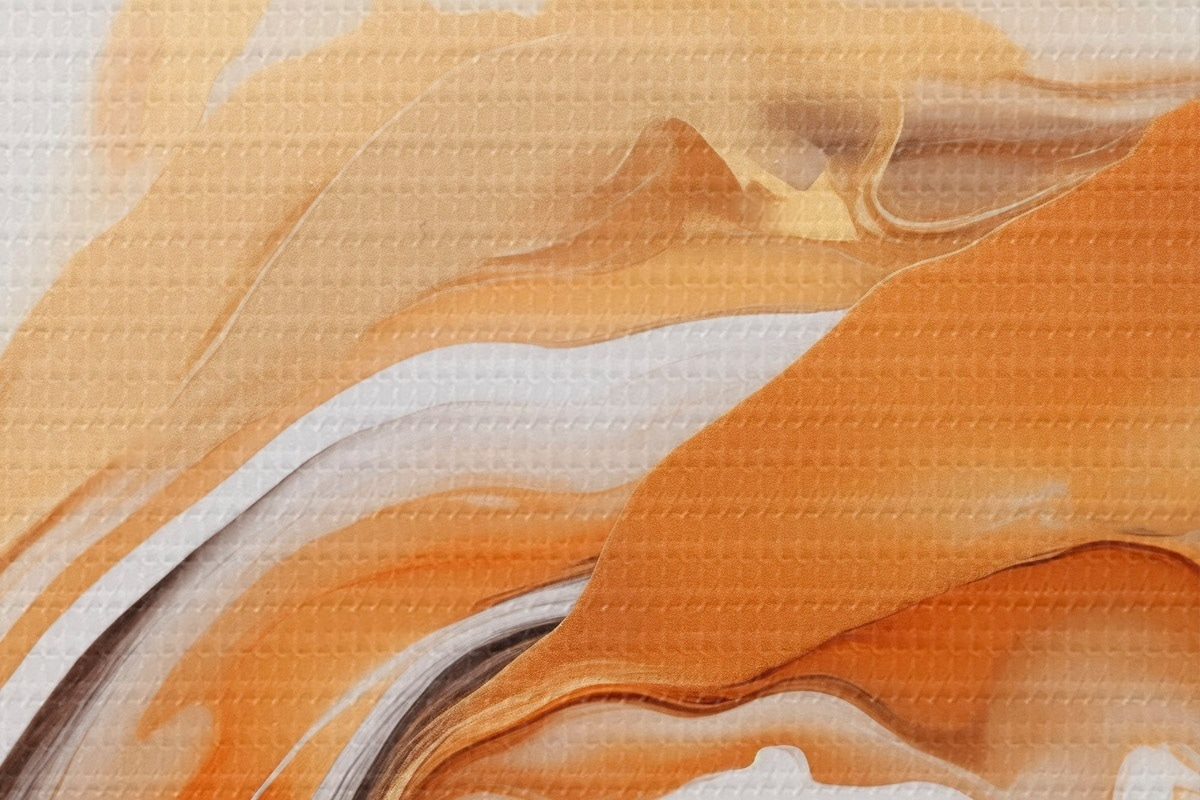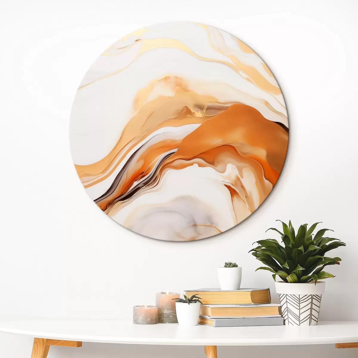 Okrągły obraz Imitacja malarstwa abstrakcyjnego z płynnymi kształtami w odcieniach bieli, pomarańczy i brązu, minimalistyczna Nr r45938