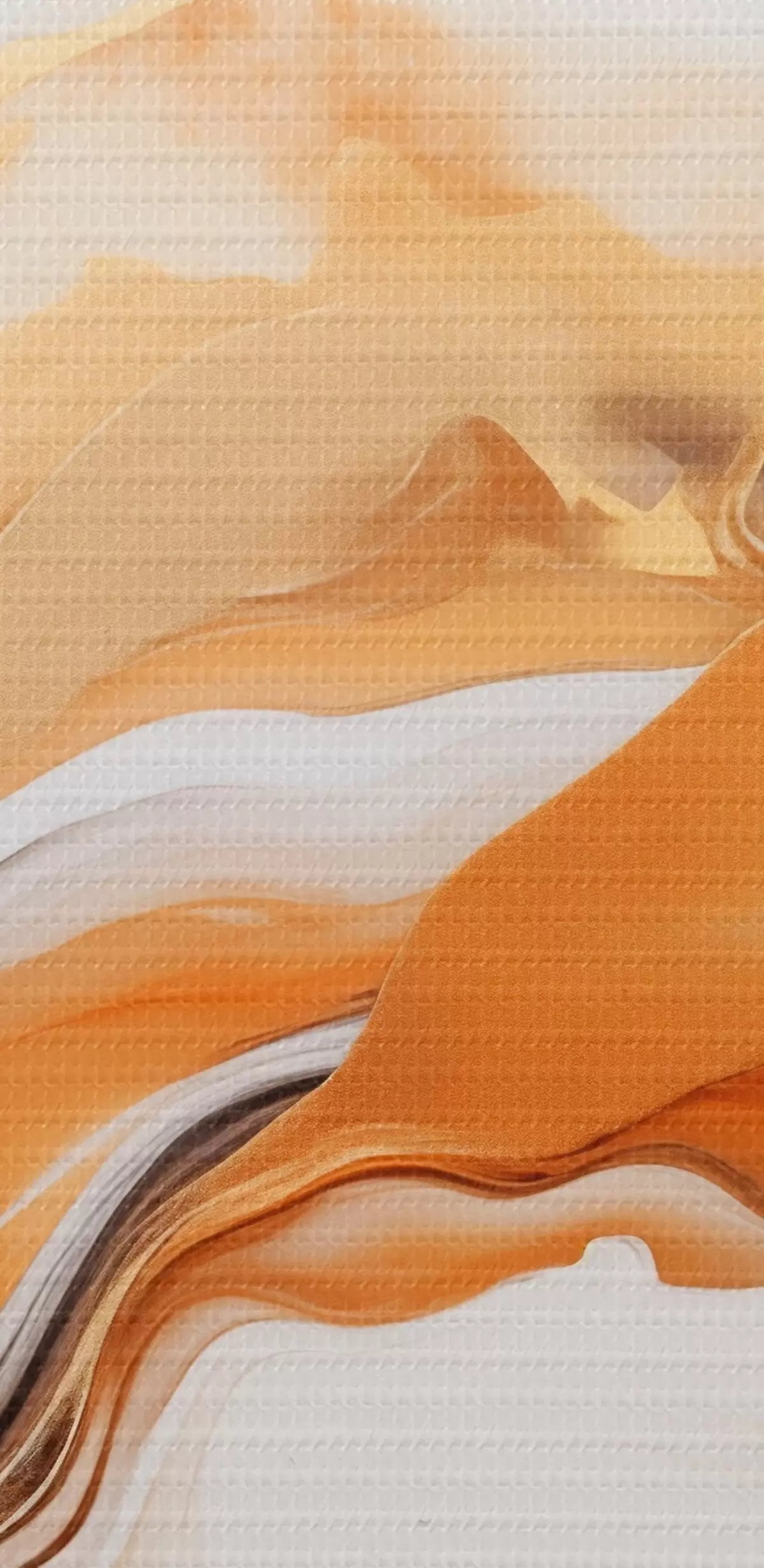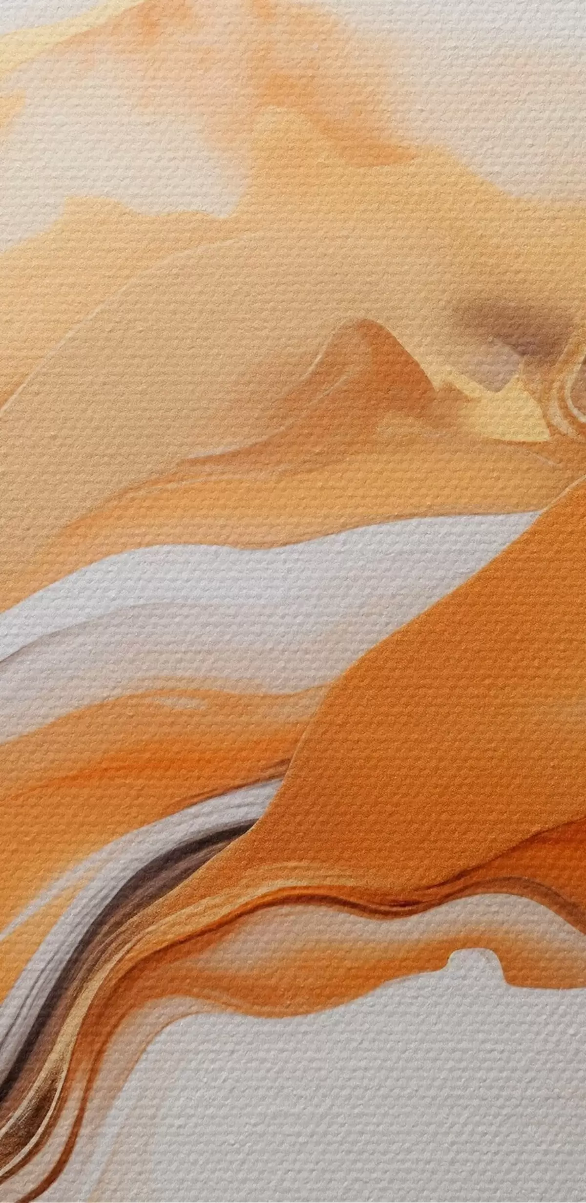 Okrągły obraz Imitacja malarstwa abstrakcyjnego z płynnymi kształtami w odcieniach bieli, pomarańczy i brązu, minimalistyczna Nr r45938