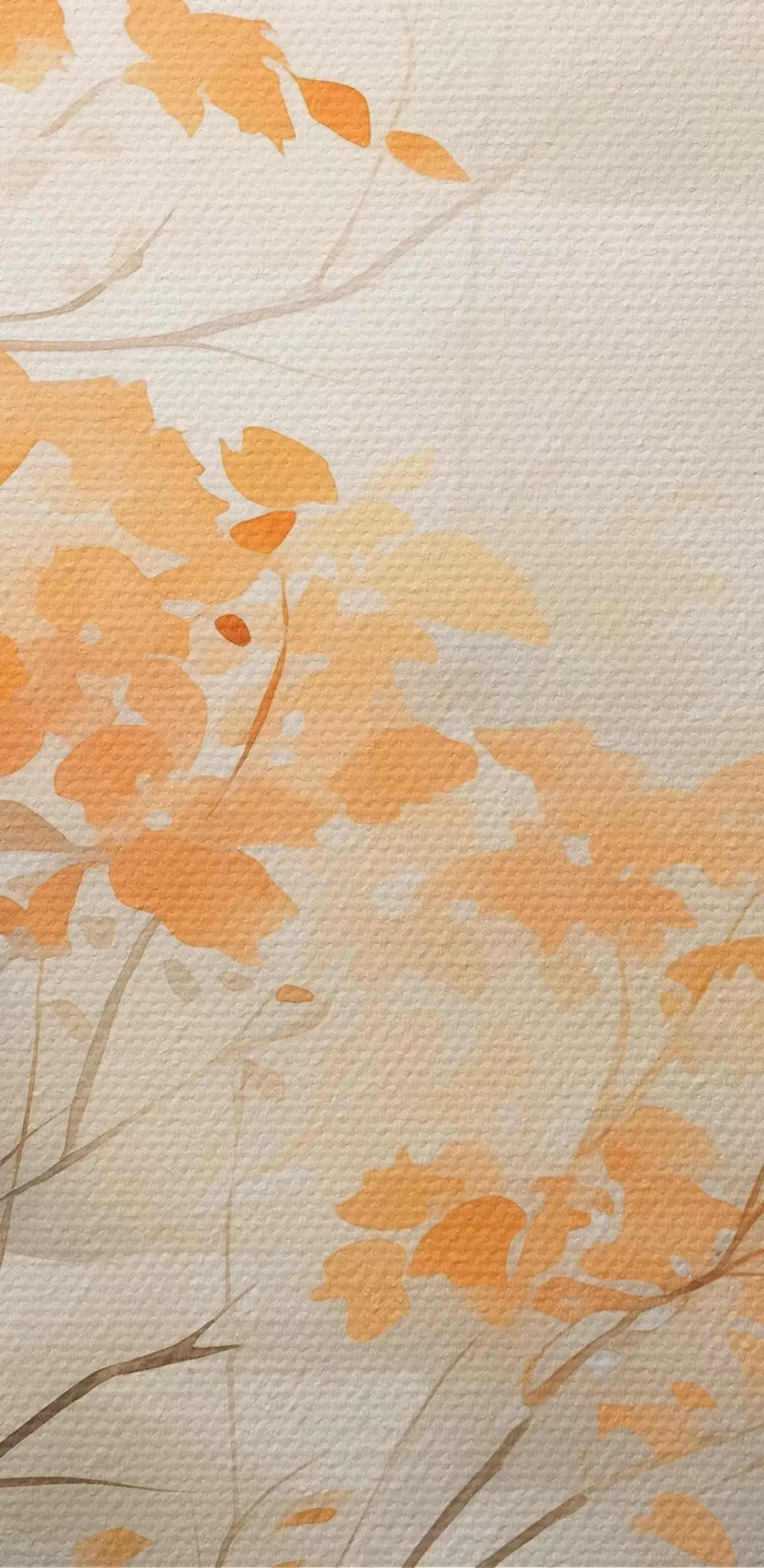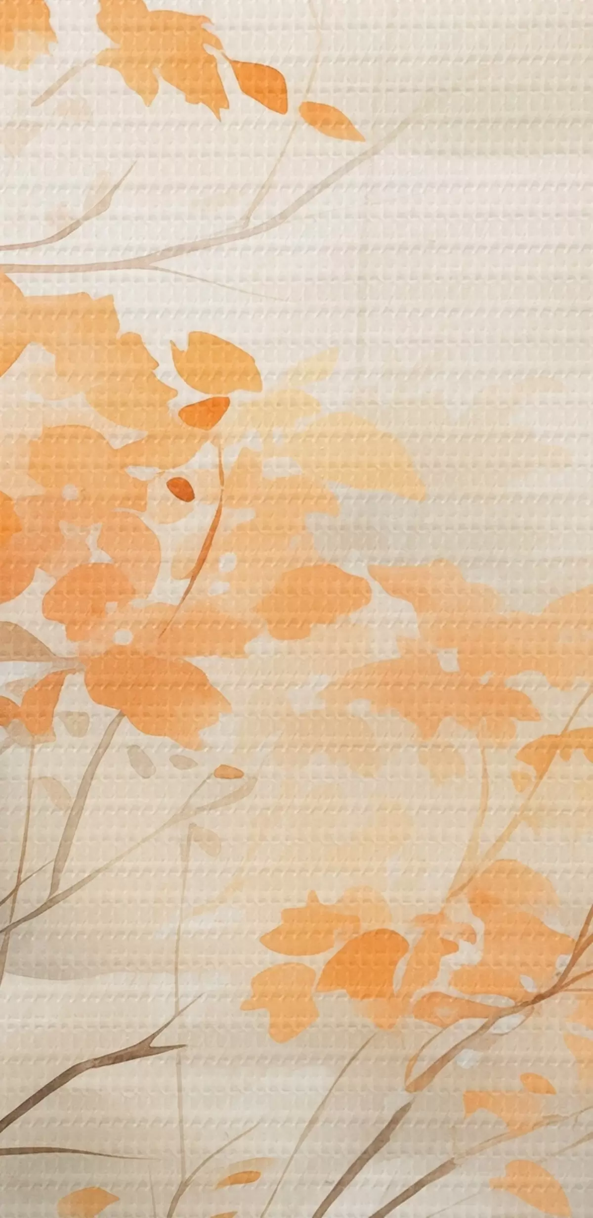 Okrągły obraz Jesienne drzewa z pomarańczowymi liśćmi i gałęziami, delikatny styl akwareli, subtelne pociągnięcia pędzla Nr r45941