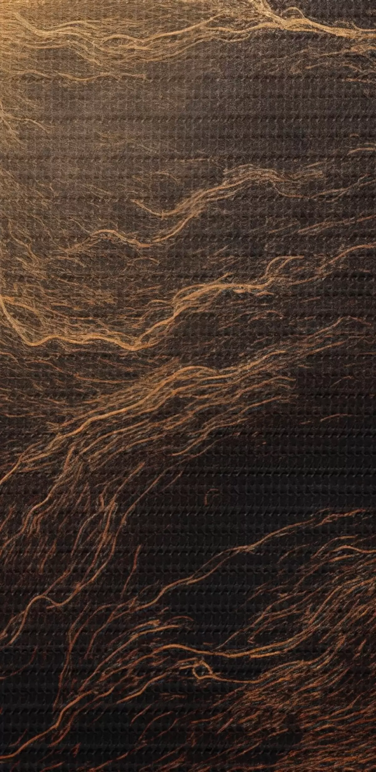 Okrągły obraz Abstrakcyjna planeta z pomarańczowymi żyłkami na czarnym tle kosmosu, nowoczesna sztuka minimalistyczna Nr r45943