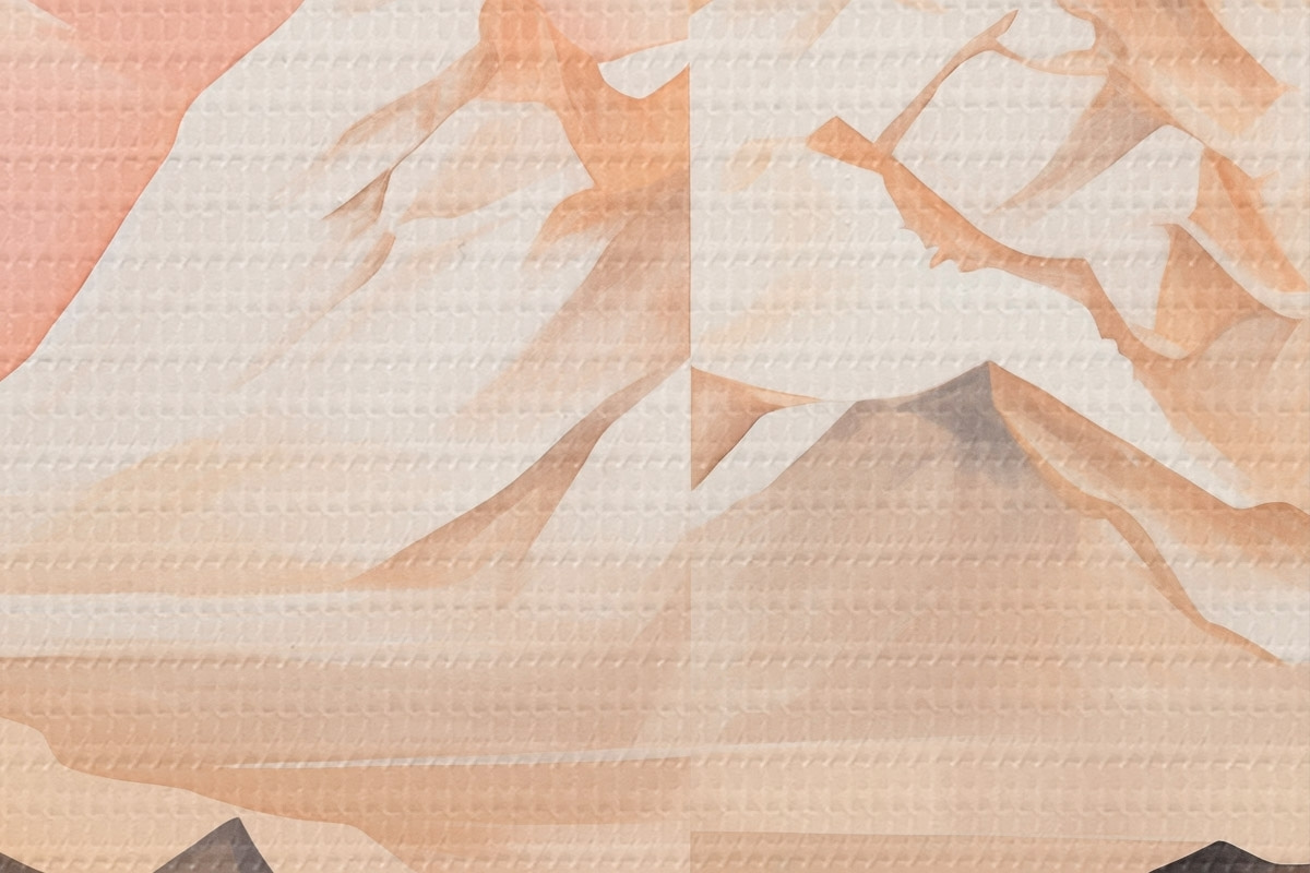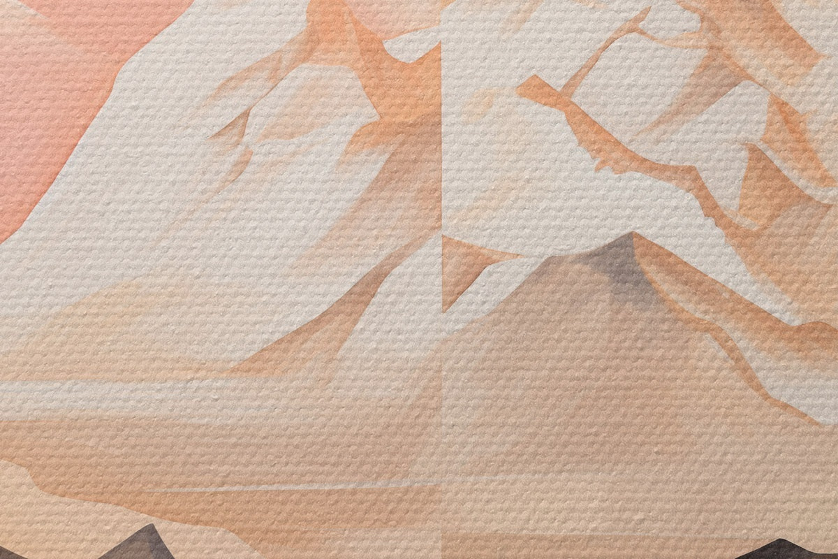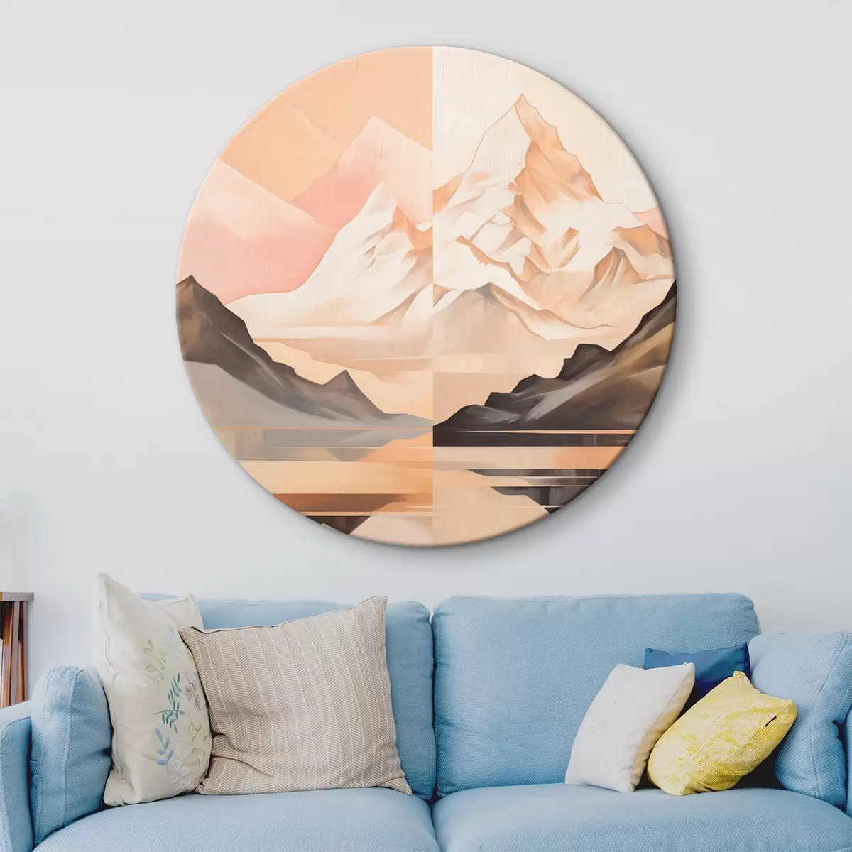 Okrągły obraz Abstrakcyjny krajobraz z górami i jeziorem, pastelowe kolory, minimalistyczny styl Nr r45948