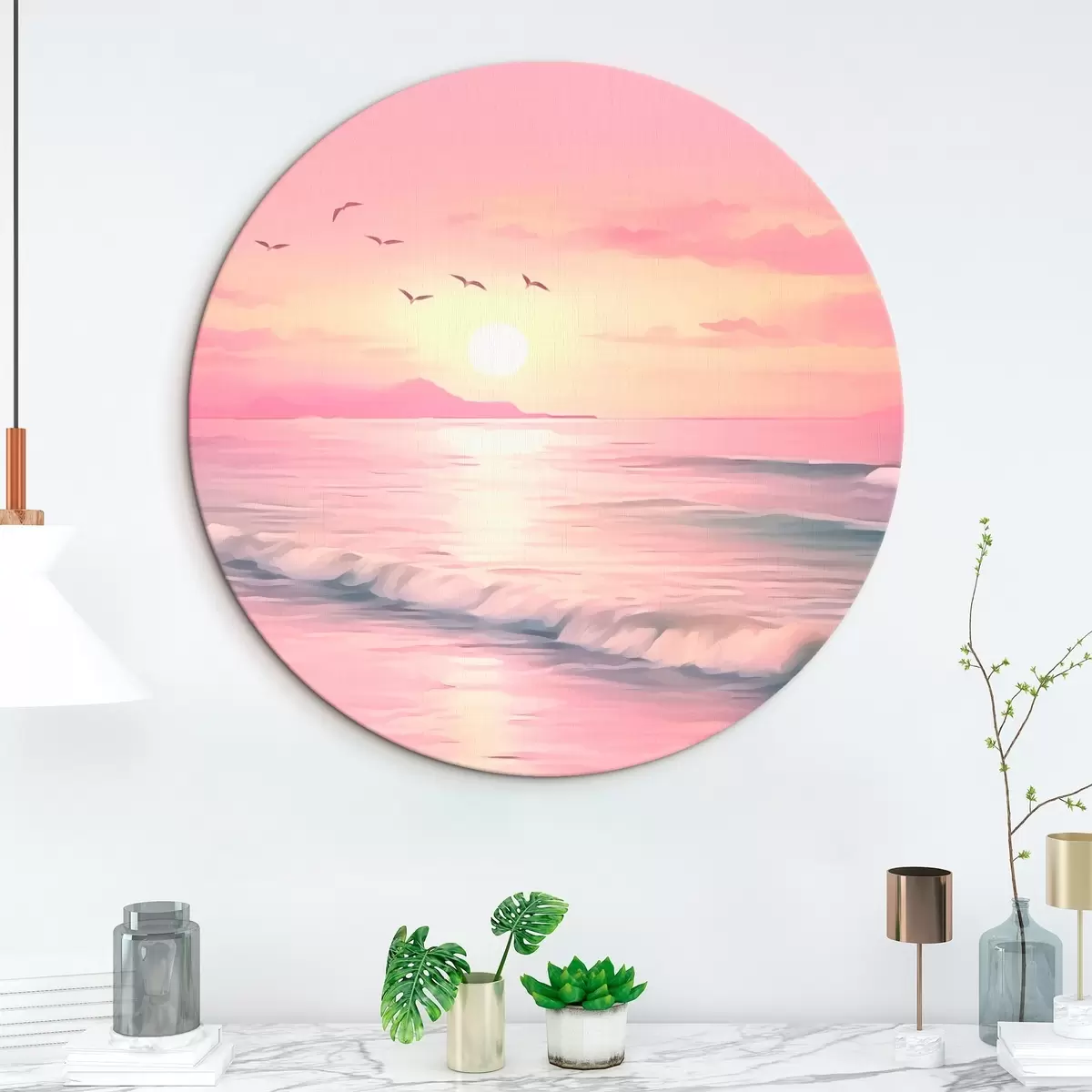 Okrągły obraz Różowy zachód słońca nad morzem Nr r45955