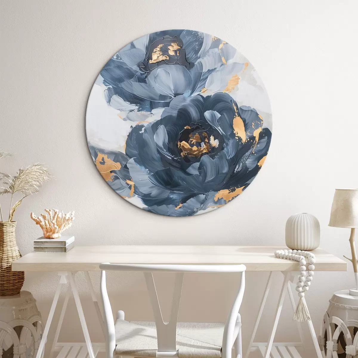 Okrągły obraz Duże abstrakcyjne kwiaty Nr r46011
