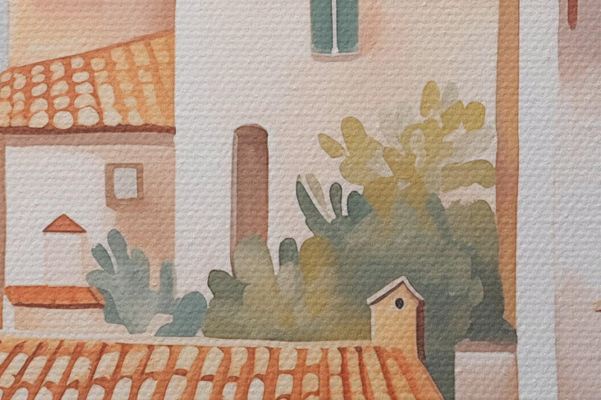 Drobny splot nici na tym płótnie przypomina powierzchnię profesjonalnych płócien artystycznych.