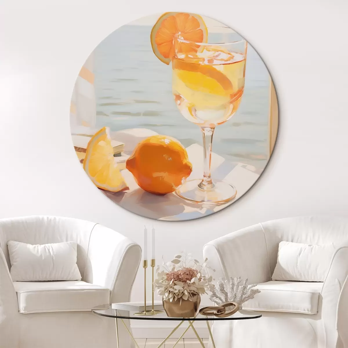 Okrągły obraz Koktajl w szklance przy oknie Nr r46064