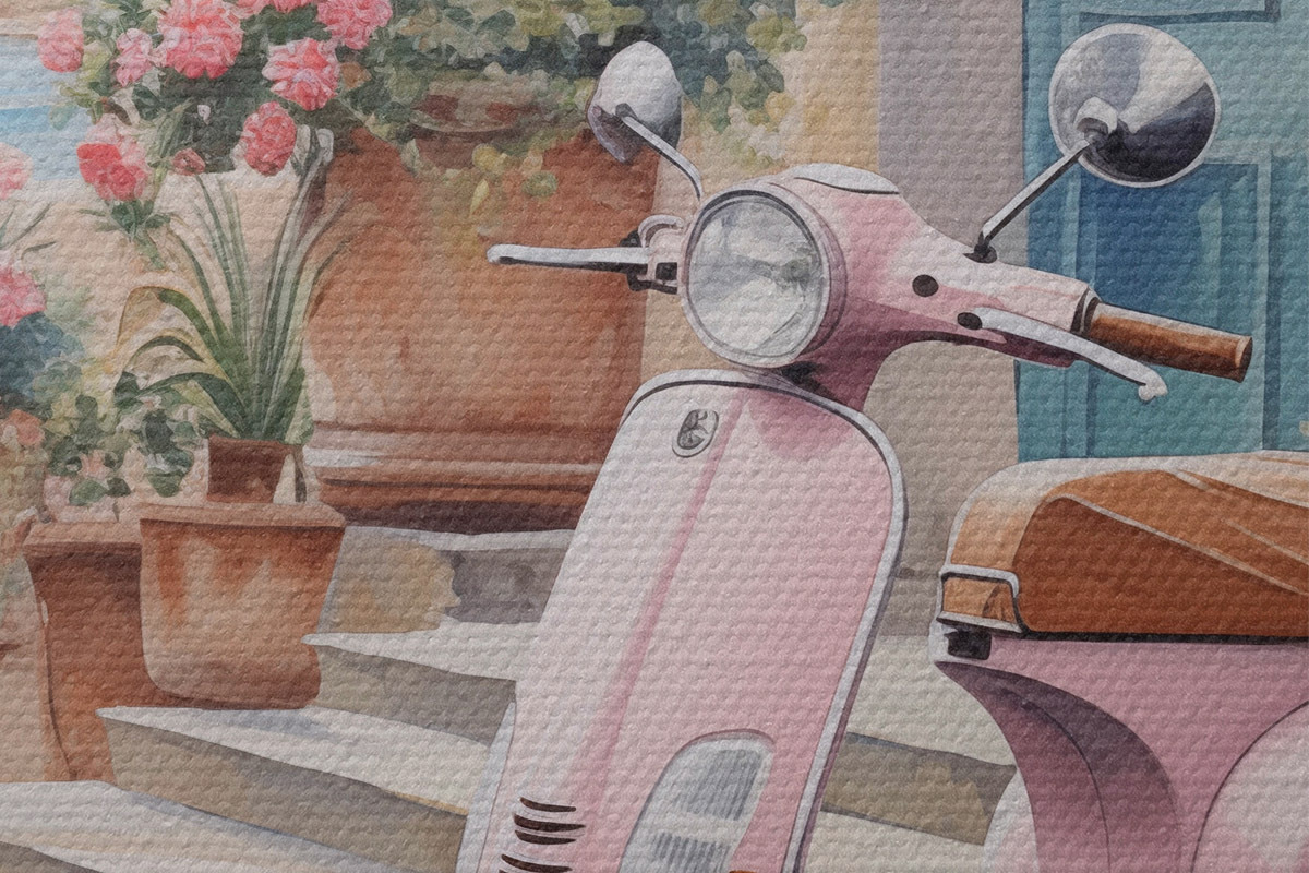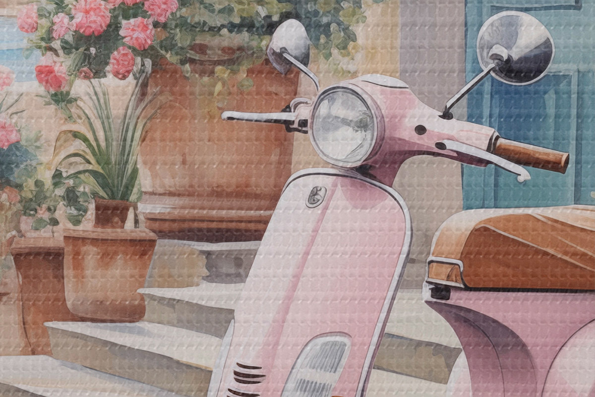 Okrągły obraz Skuter na tle domu Nr r46065