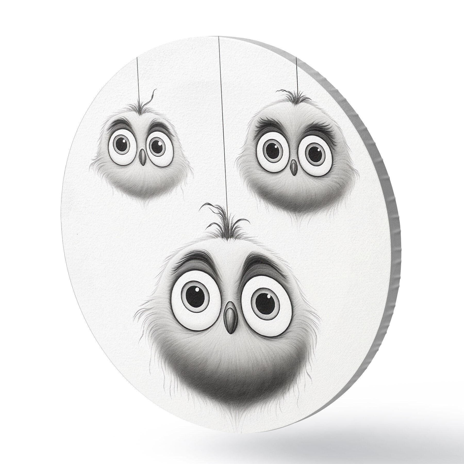 Okrągły obraz Trzy urocze ptaszki Nr r46072