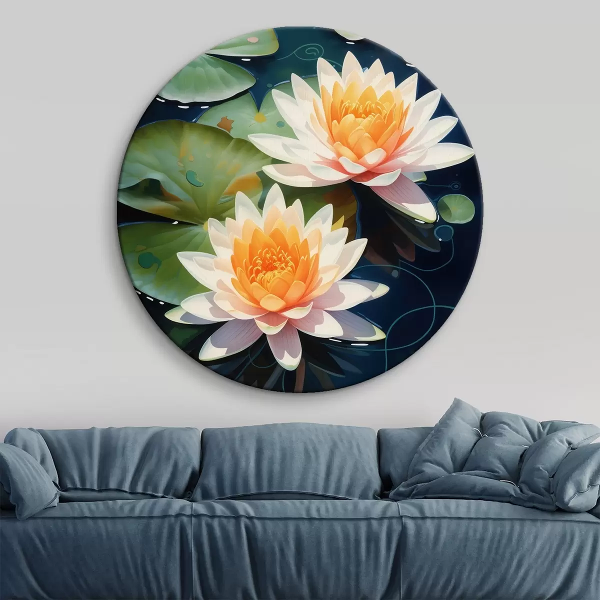 Okrągły obraz Dwa kwiaty lotosu Nr r46084