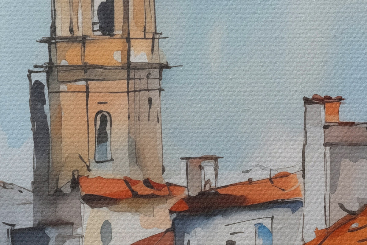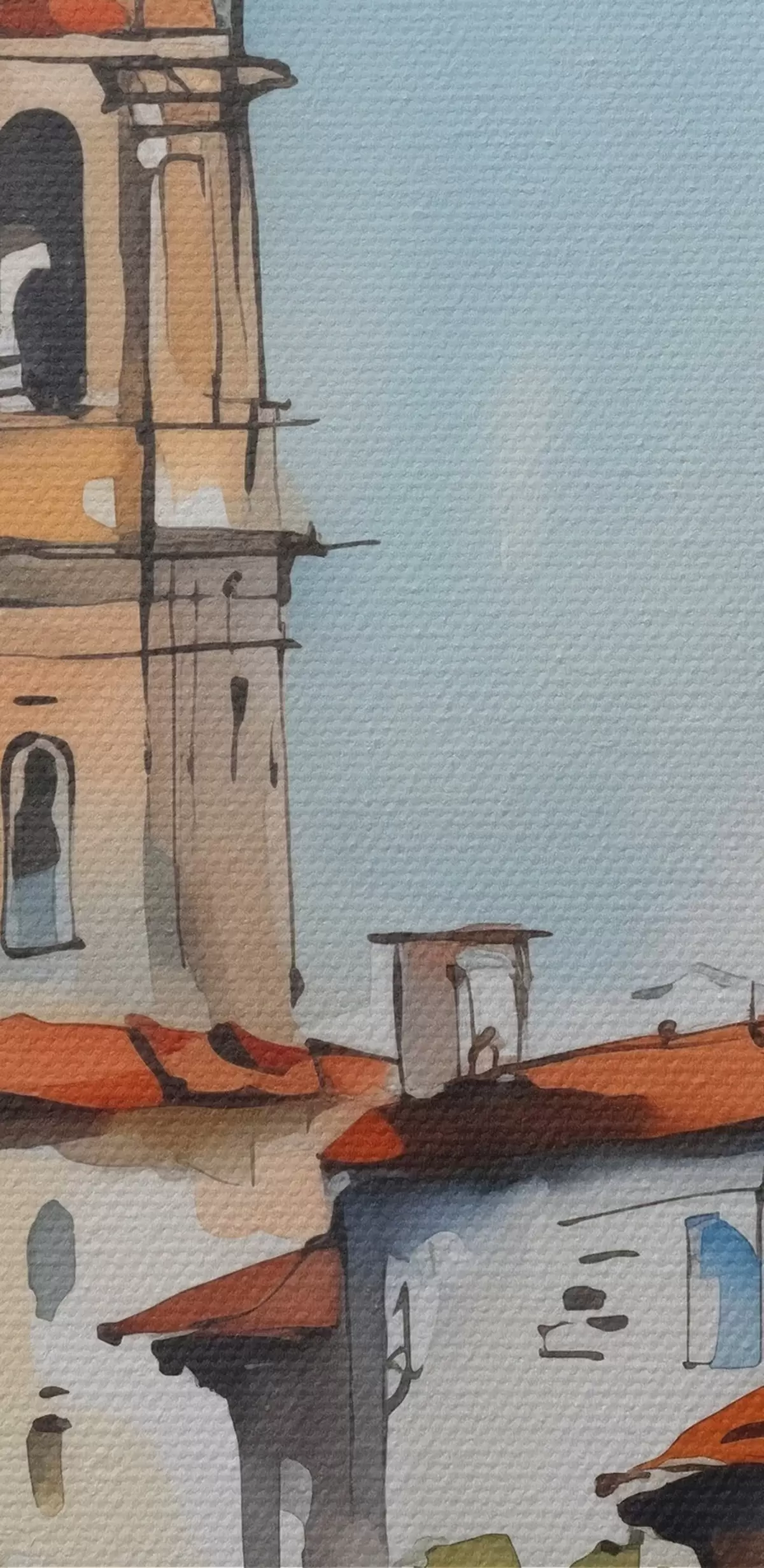 Okrągły obraz Akwarela imitująca pejzaż miejski Nr r46120