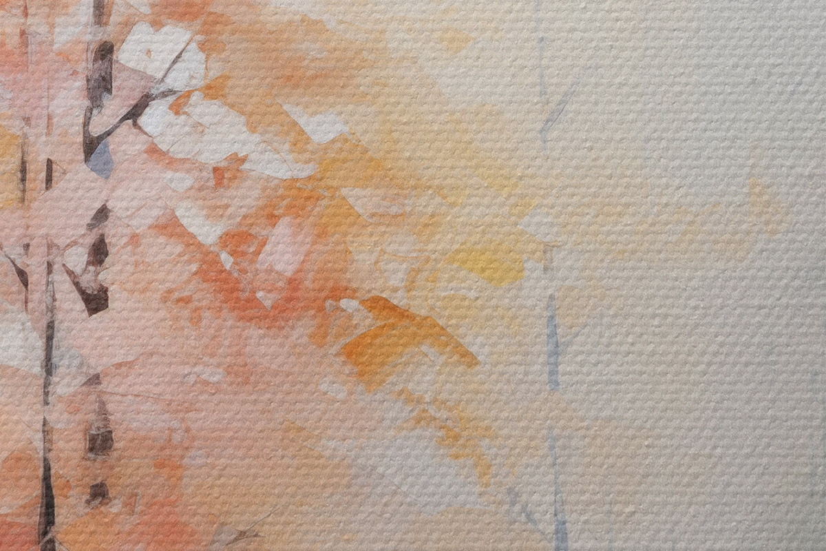 Drobny splot nici na tym płótnie przypomina powierzchnię profesjonalnych płócien artystycznych.