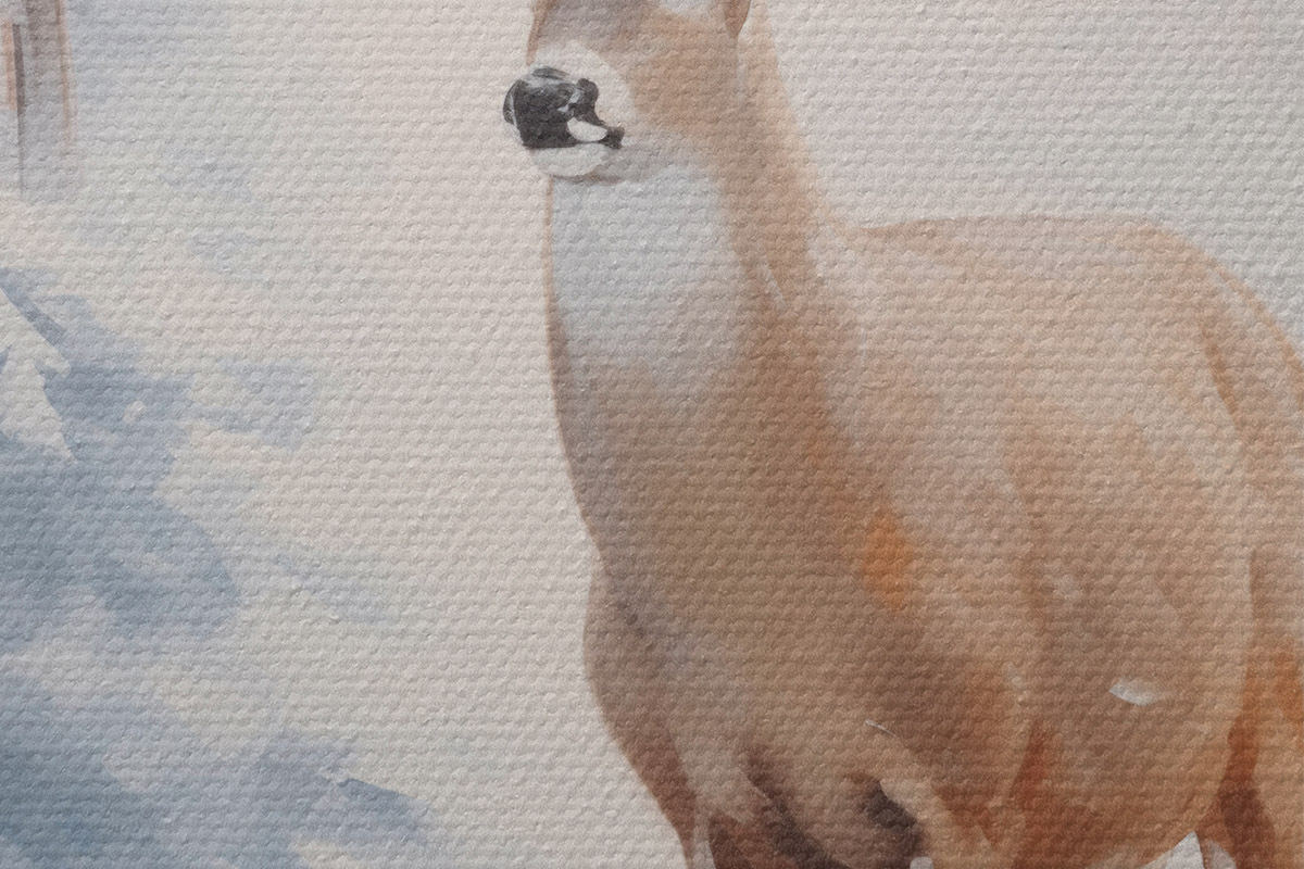 Drobny splot nici na tym płótnie przypomina powierzchnię profesjonalnych płócien artystycznych.