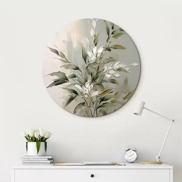 Okrągły obraz Abstrakcyjna gałąź z liśćmi Nr r46135
