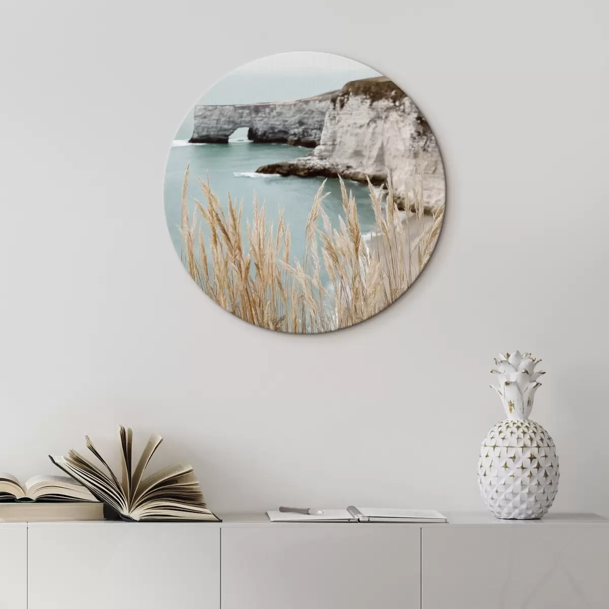Okrągły obraz Wybrzeże klifowe z trzcinami na pierwszym planie Nr r46141