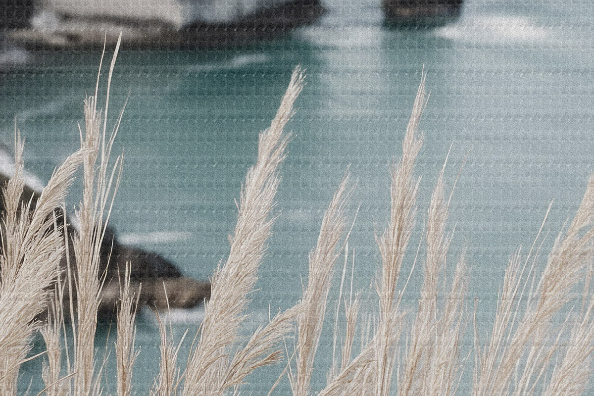 Okrągłe obrazy Morze i skalny łuk, widok przez wyschnięte trawy r46142