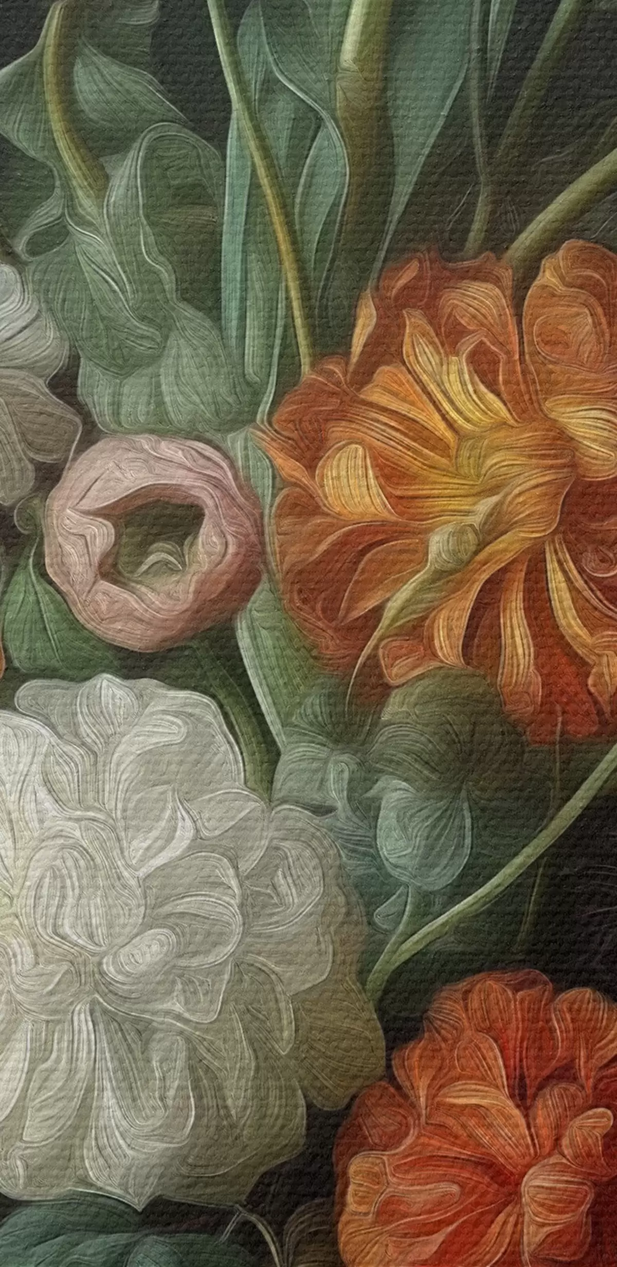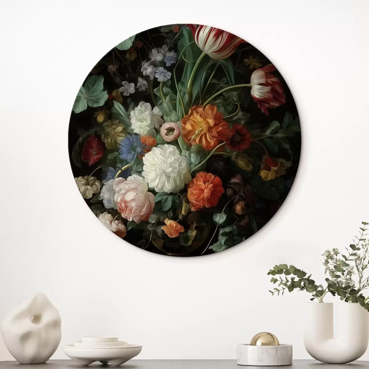 Okrągły obraz Kompozycja kwiatowa w stylu dawnych martwych natur Nr r46145