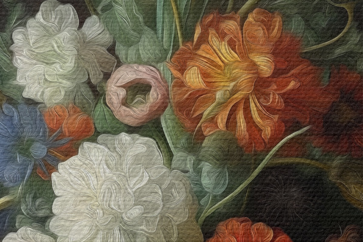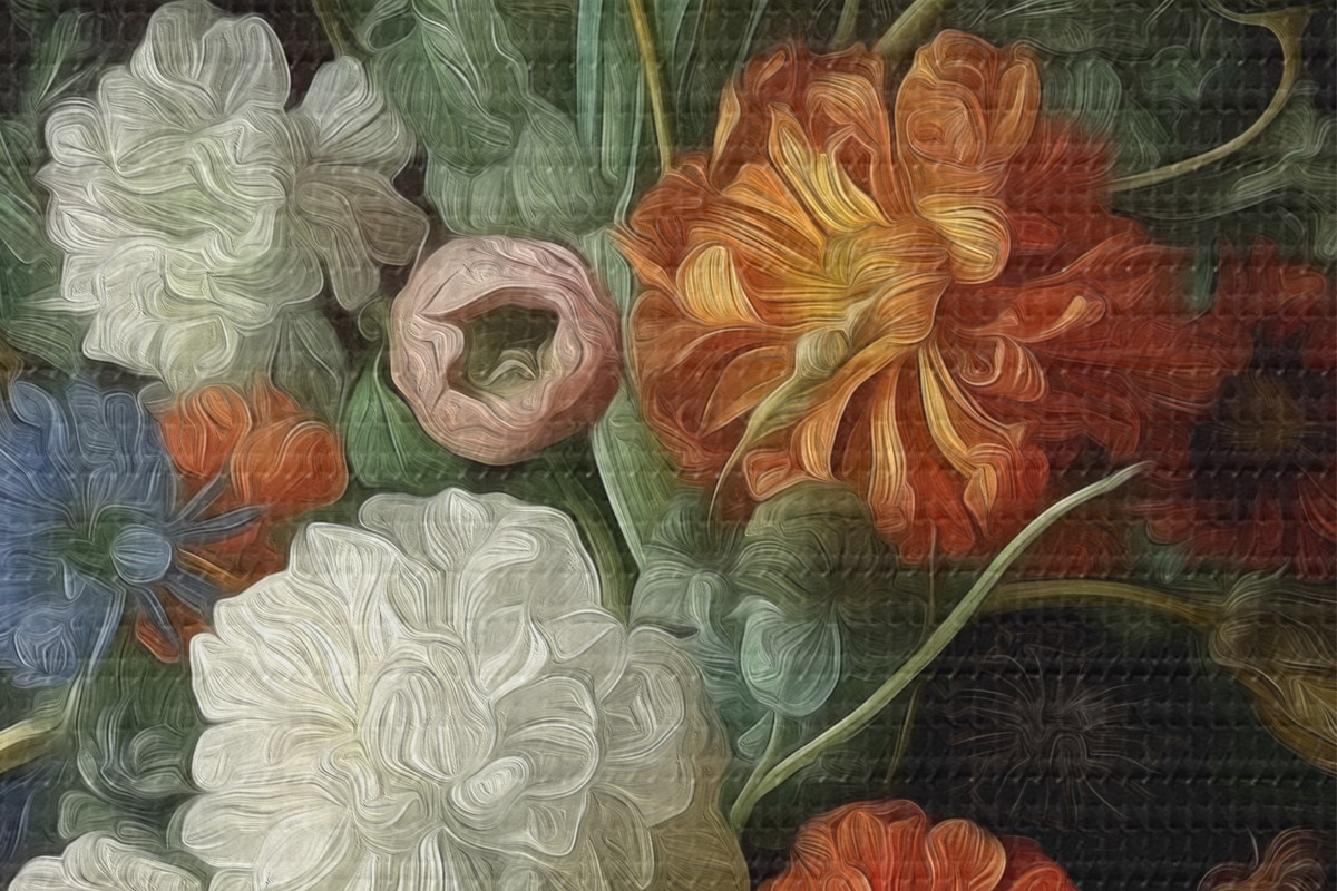 Okrągłe obrazy Kompozycja kwiatowa w stylu dawnych martwych natur r46145
