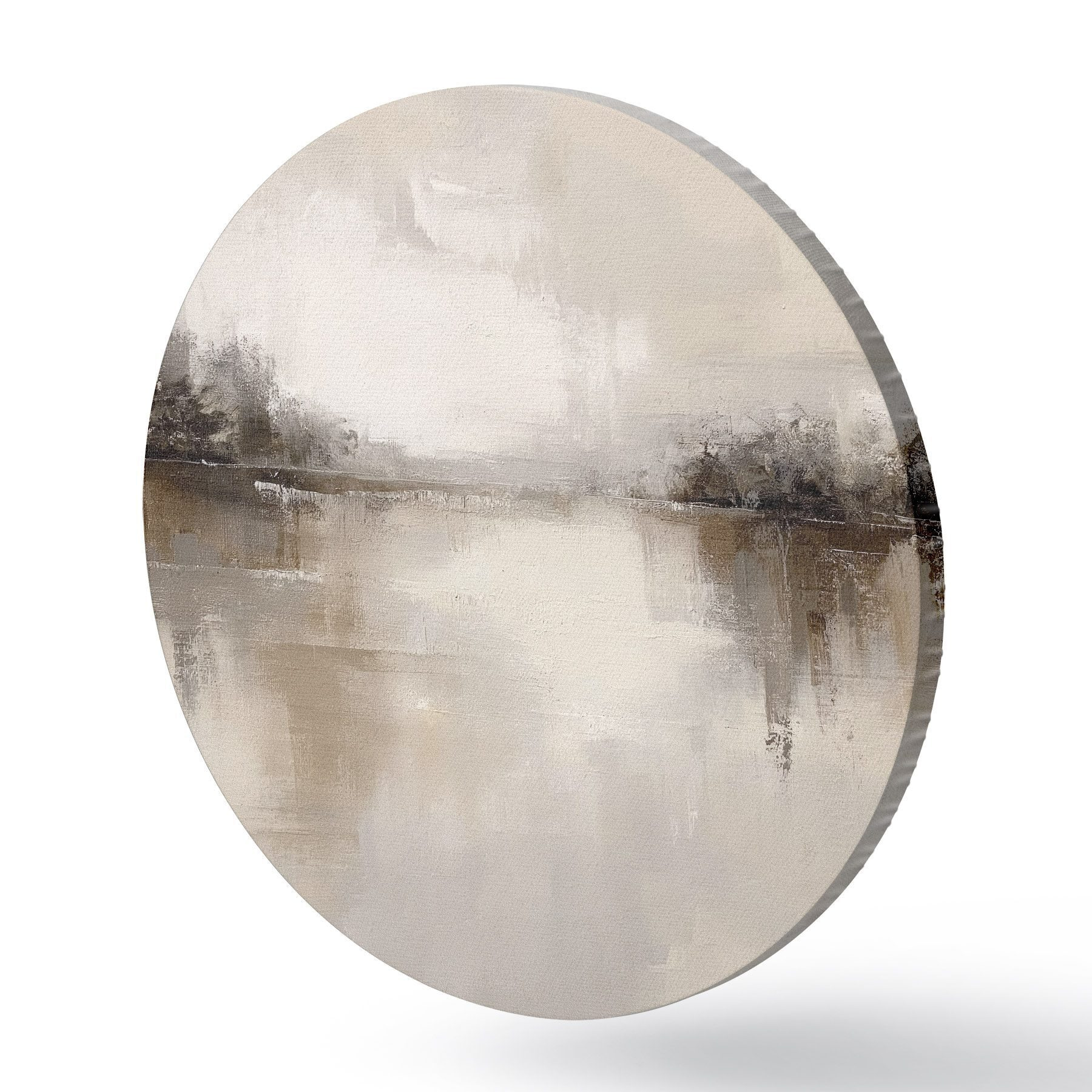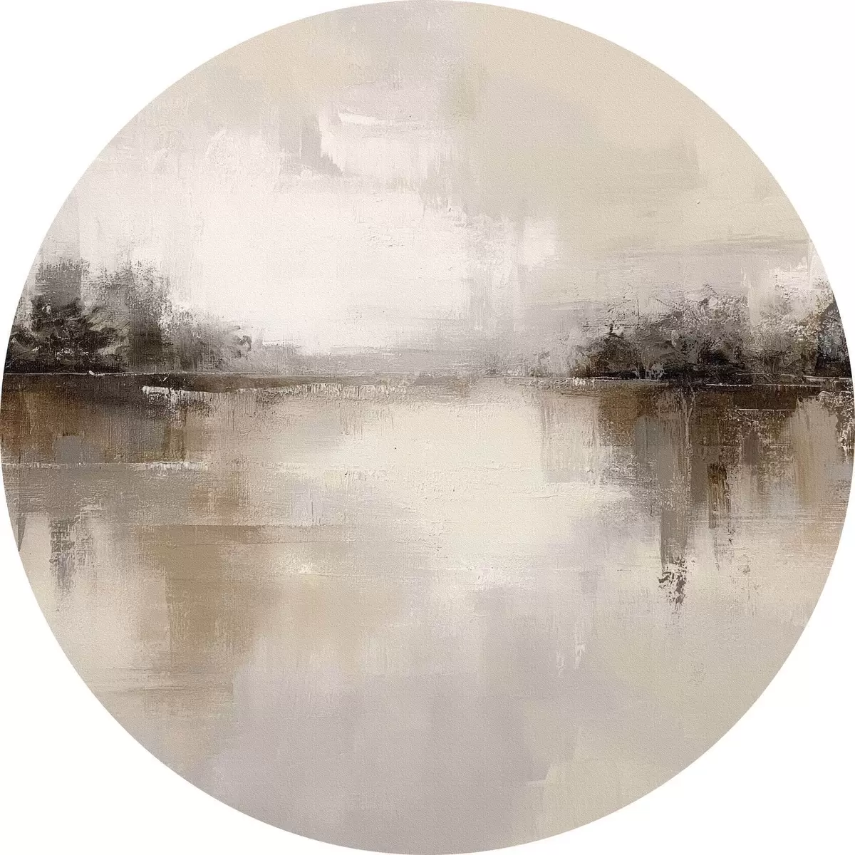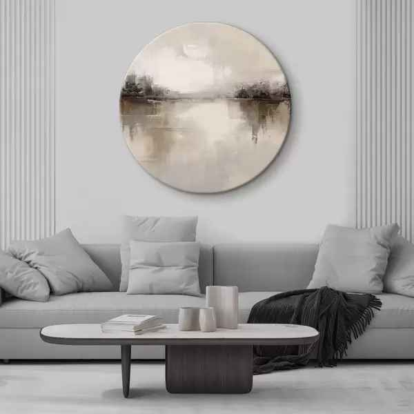 Okrągły obraz Łagodny krajobraz z jeziorem w ciepłych odcieniach beżowo-szarych Nr r46158