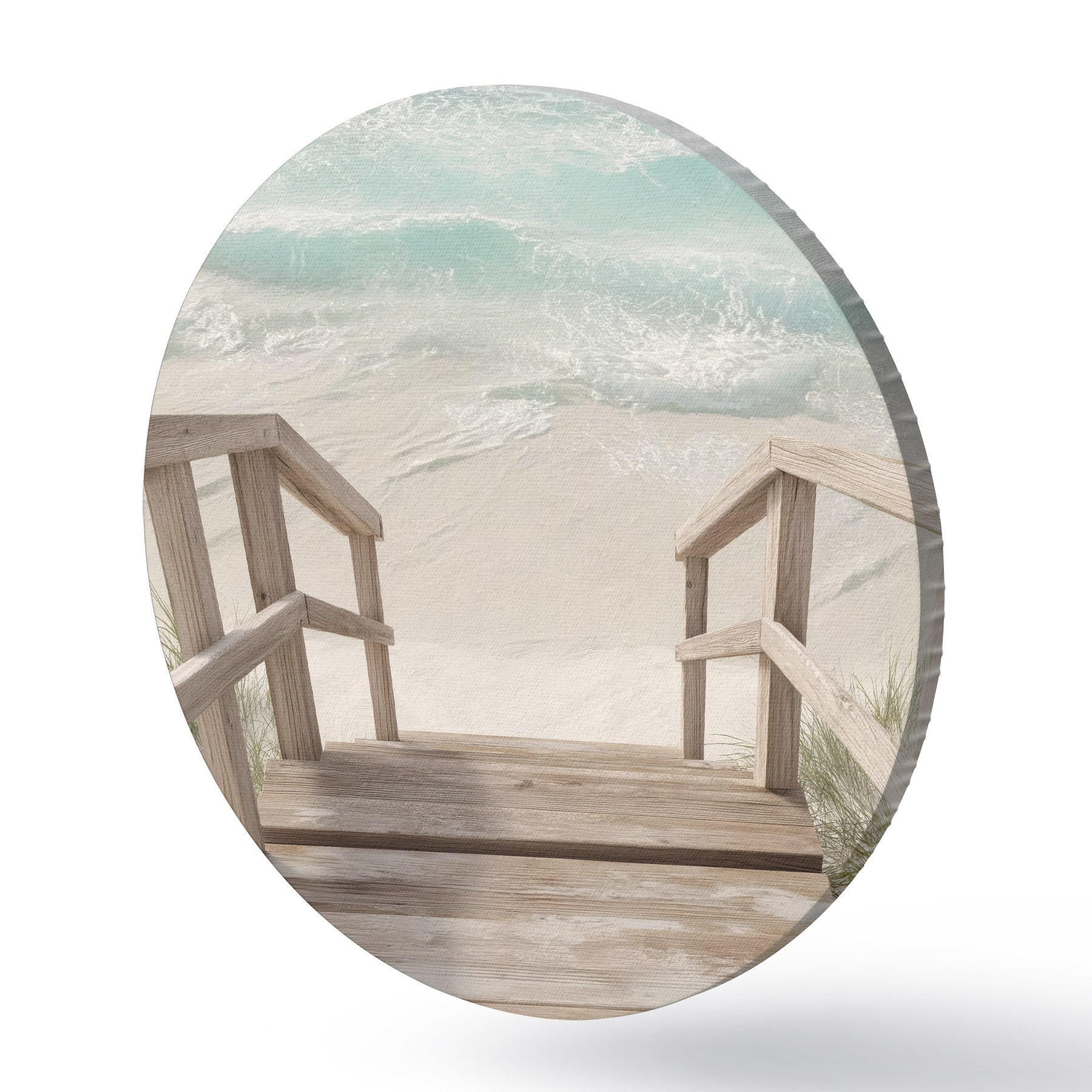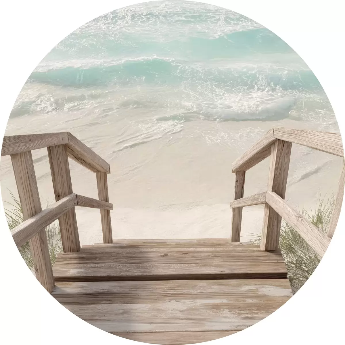 Okrągły obraz Drewniane schody prowadzące do turkusowej plaży Nr r46163