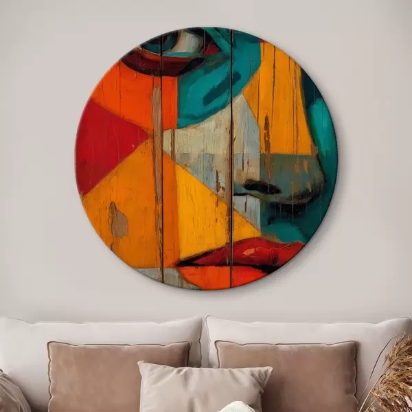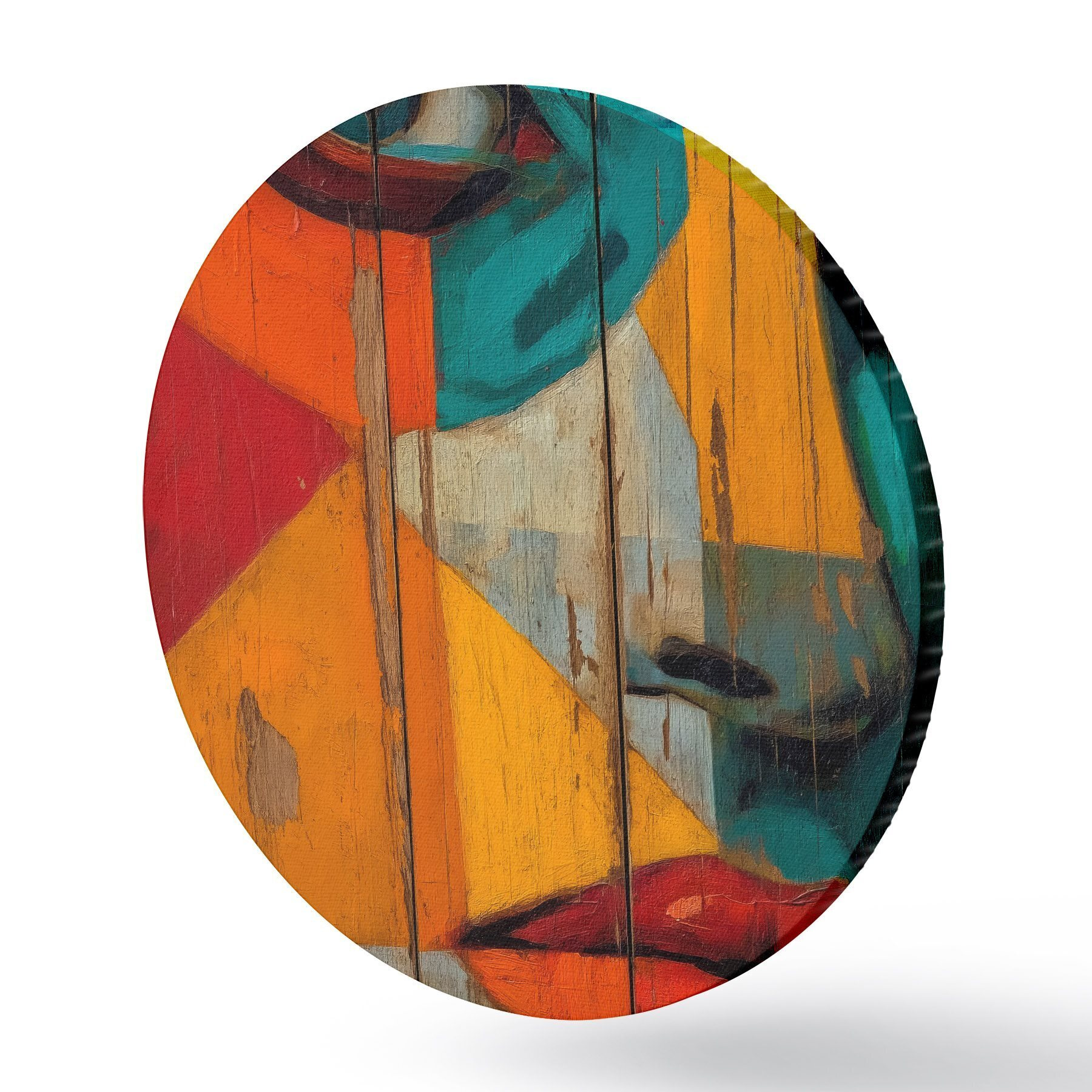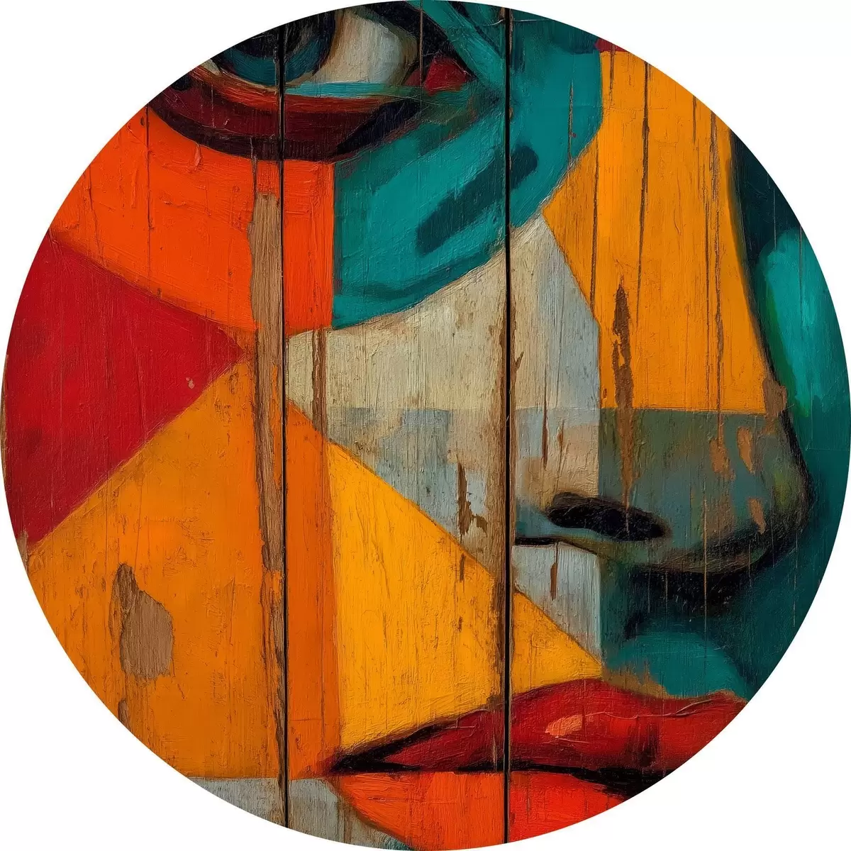 Okrągły obraz Jasny geometryczny portret twarzy na drewnianych deskach Nr r46165