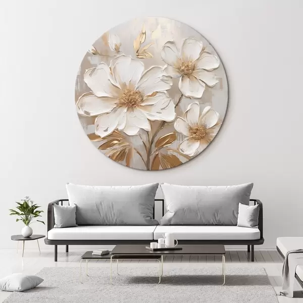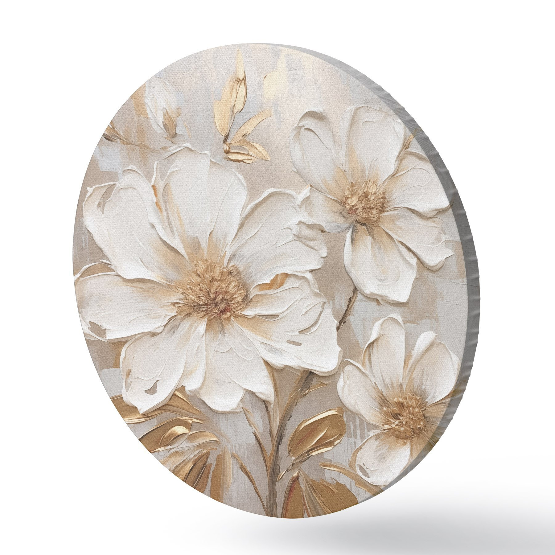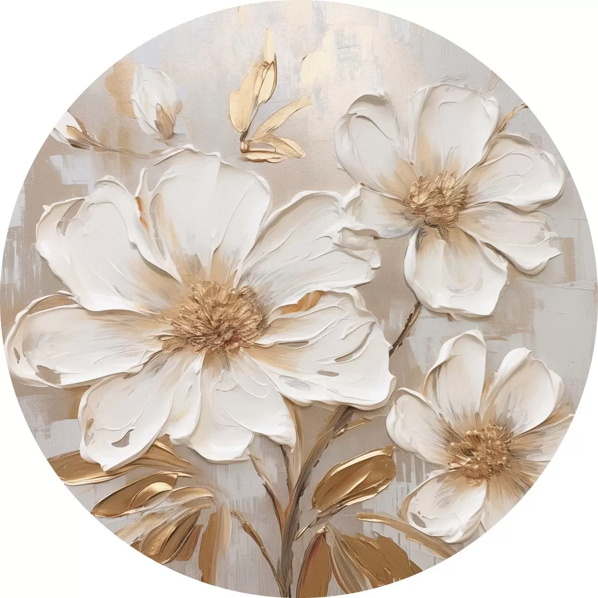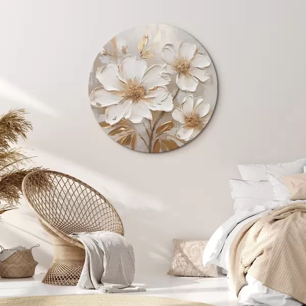 Okrągłe obrazy Teksturowane kwiaty na jasnym tle w ciepłych odcieniach r46166