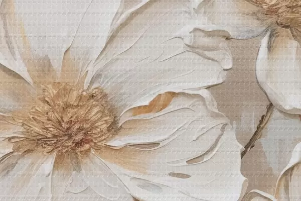 Okrągłe obrazy Teksturowane kwiaty na jasnym tle w ciepłych odcieniach r46166