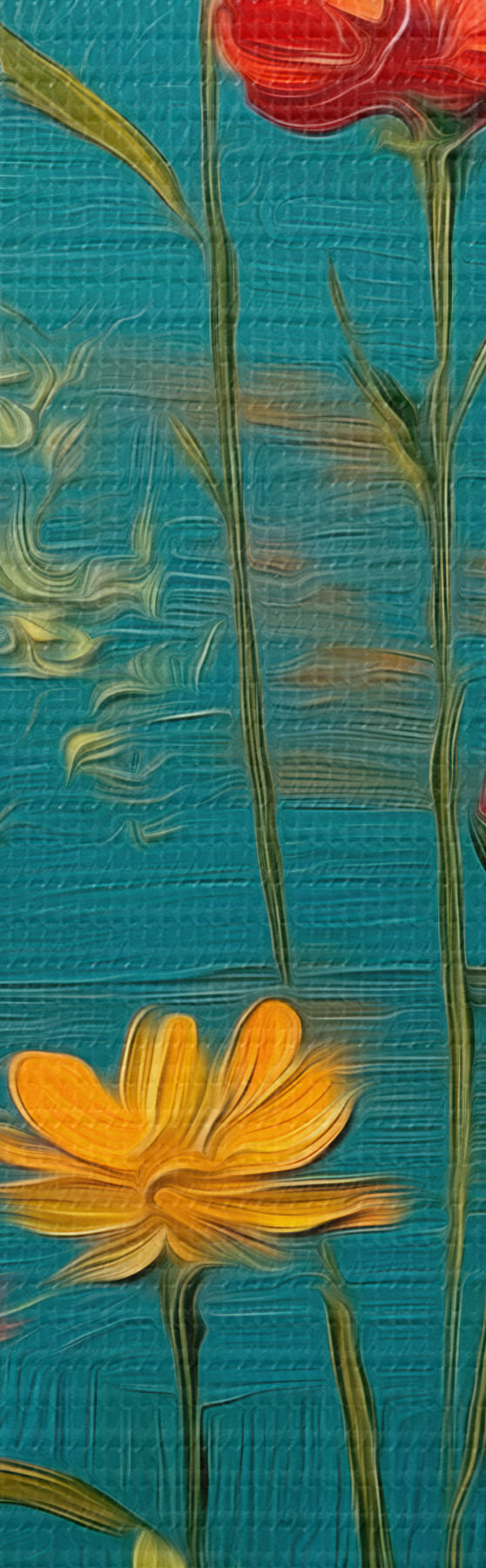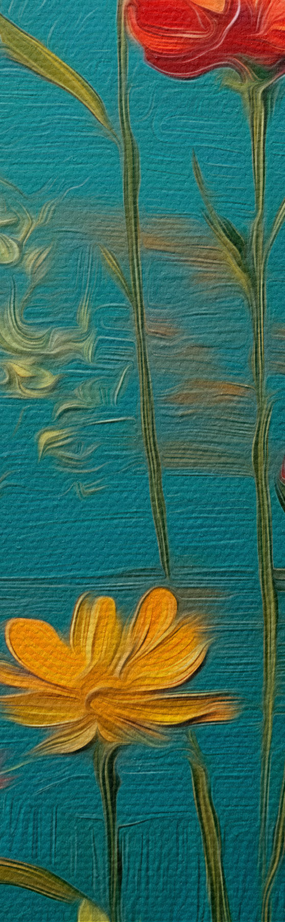 Okrągłe obrazy Kwiaty polne na ciemnym turkusowym tle r46169