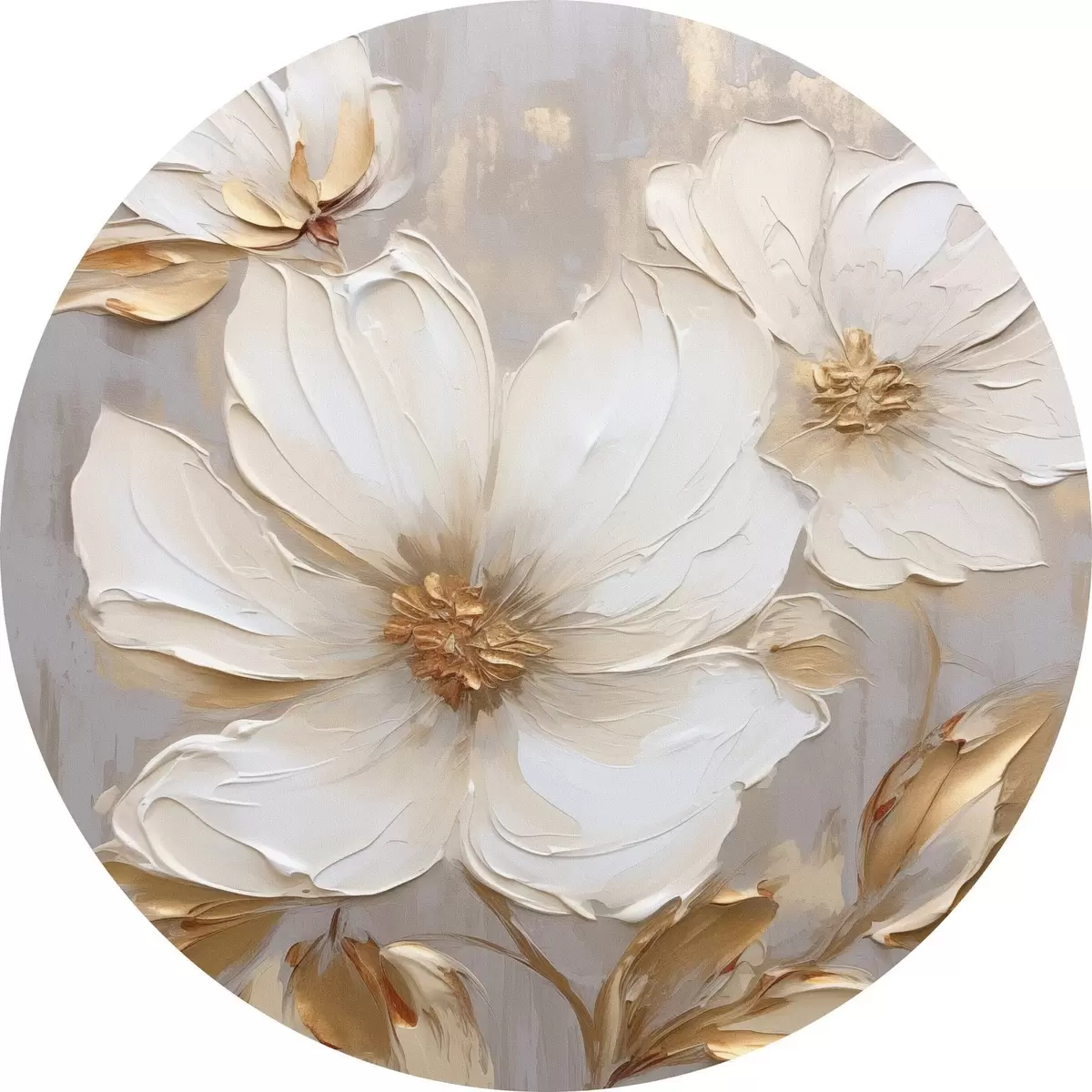 Okrągły obraz Duże, teksturowane kwiaty z pociągnięciami pędzla w ciepłej palecie barw Nr r46176
