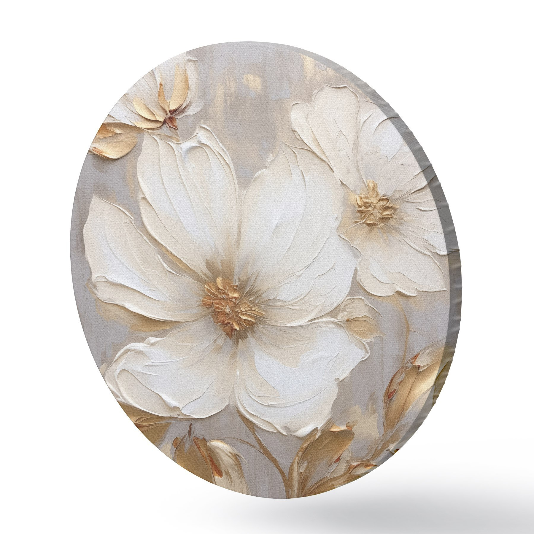 Okrągłe obrazy Duże, teksturowane kwiaty z pociągnięciami pędzla w ciepłej palecie barw r46176